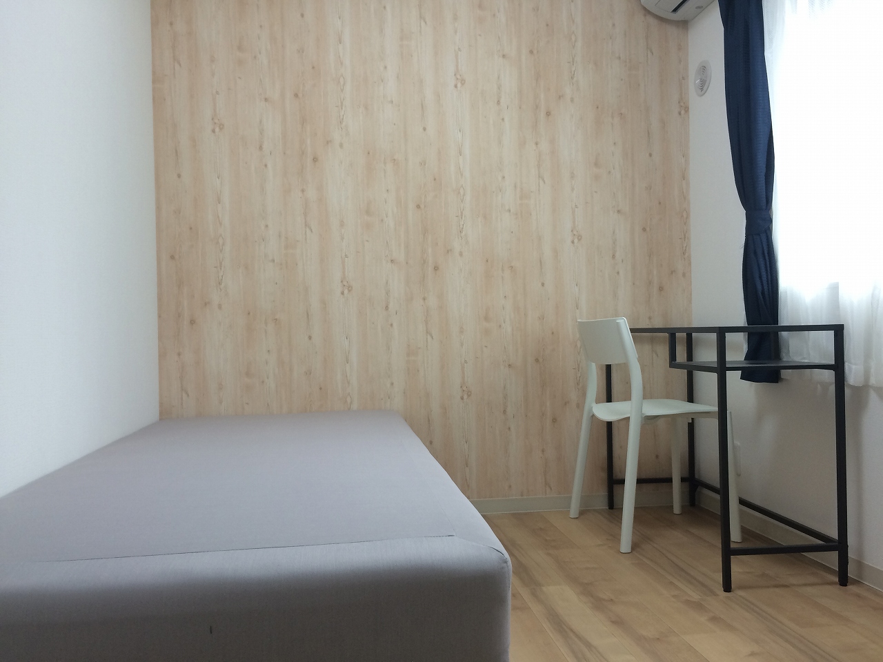 | 部屋設備 | エアコン・机・椅子・冷蔵庫・ベット・収納ラック・カーテン・室内物干し |