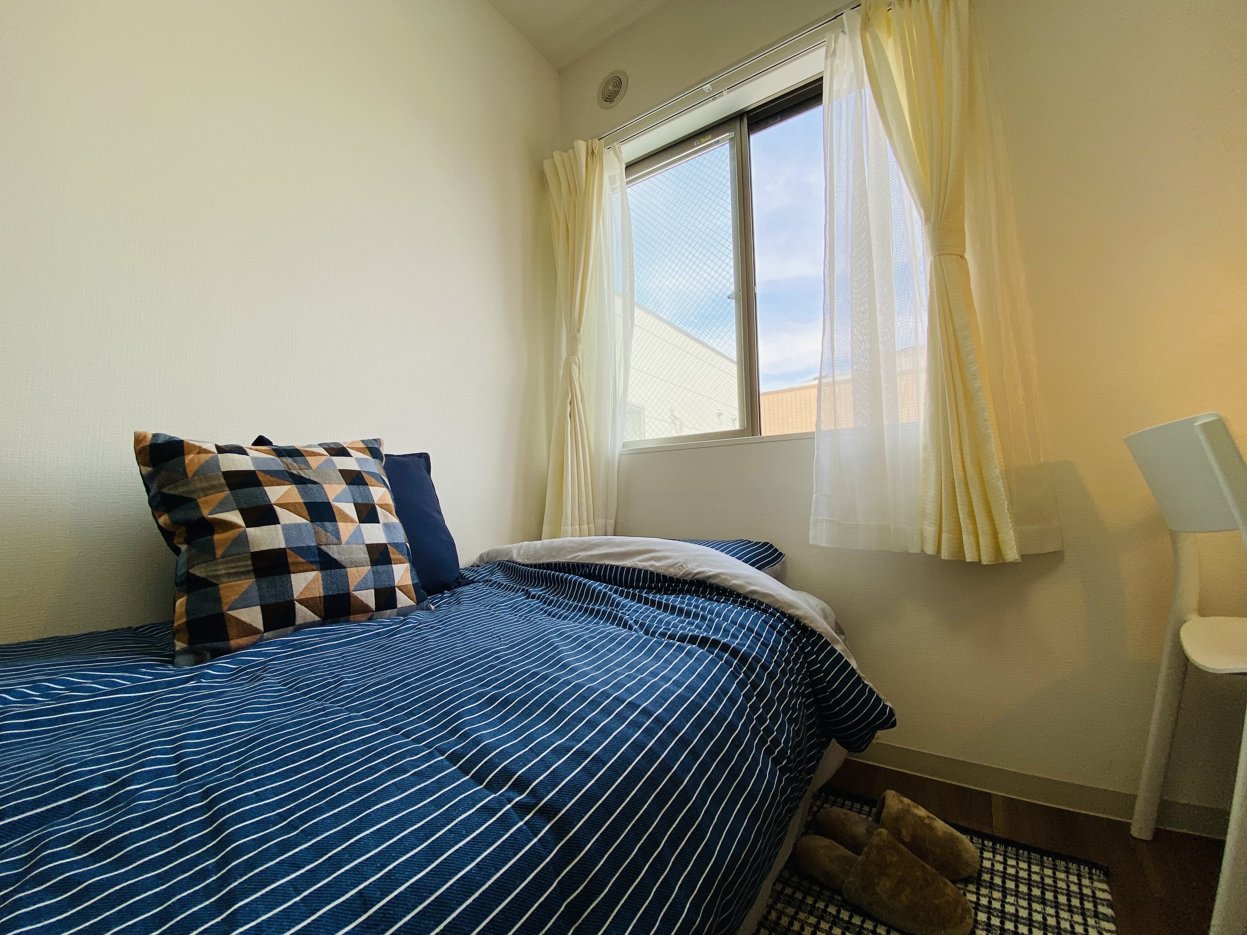 | 部屋設備 | エアコン・机・椅子・冷蔵庫・ベット・収納ラック・カーテン・室内物干し |