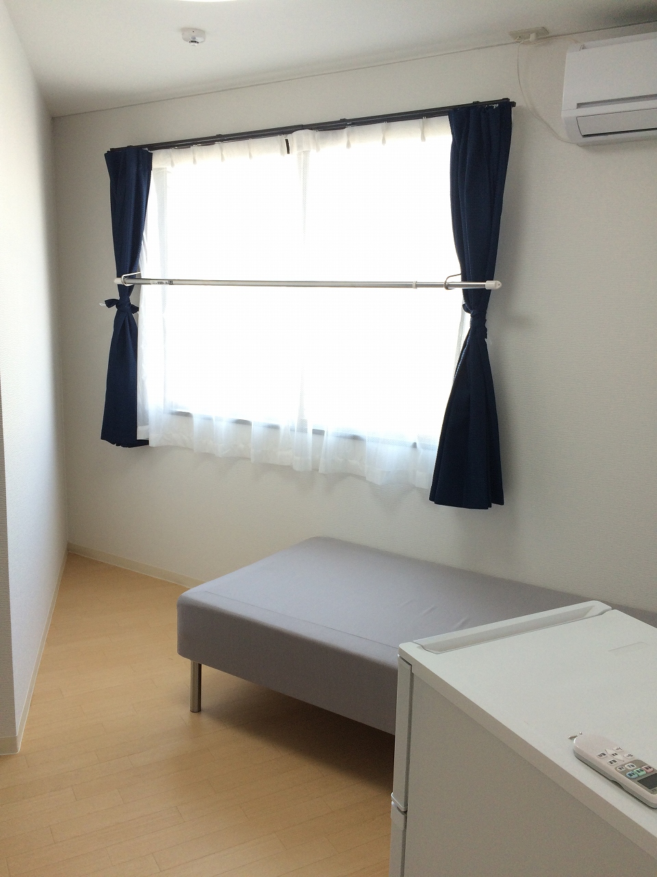 | 部屋設備 | ベッド・机・イス・カーテン・照明器具・冷蔵庫・エアコン・収納棚・物干し器具 |