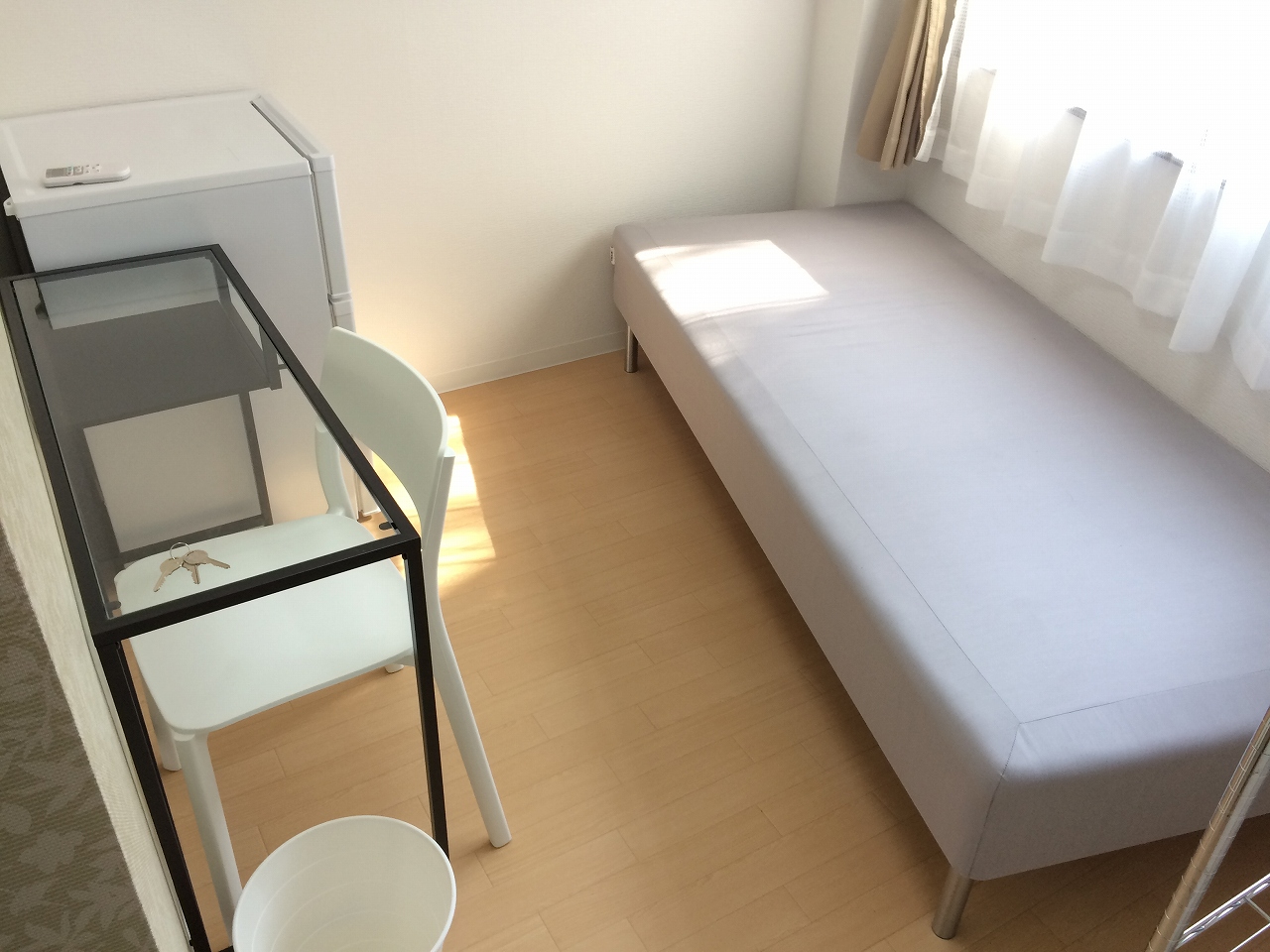 | 部屋設備 | ベッド・机・イス・カーテン・照明器具・冷蔵庫・エアコン・収納棚・物干し器具 |