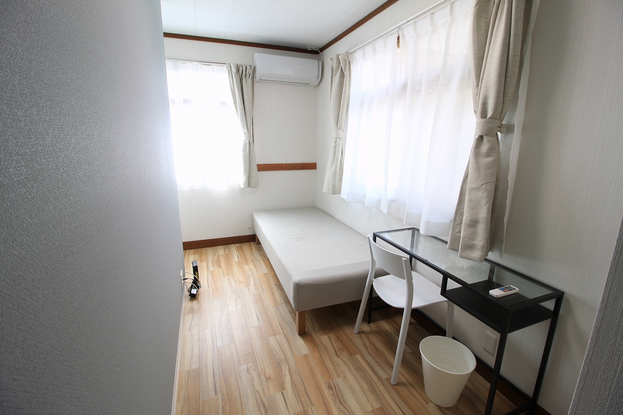 | 部屋設備 | ベッド・机・イス・カーテン・照明器具・冷蔵庫・エアコン・収納棚・物干し器具 |