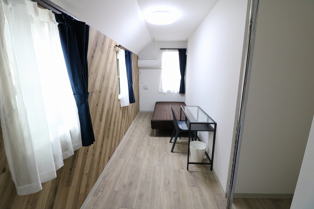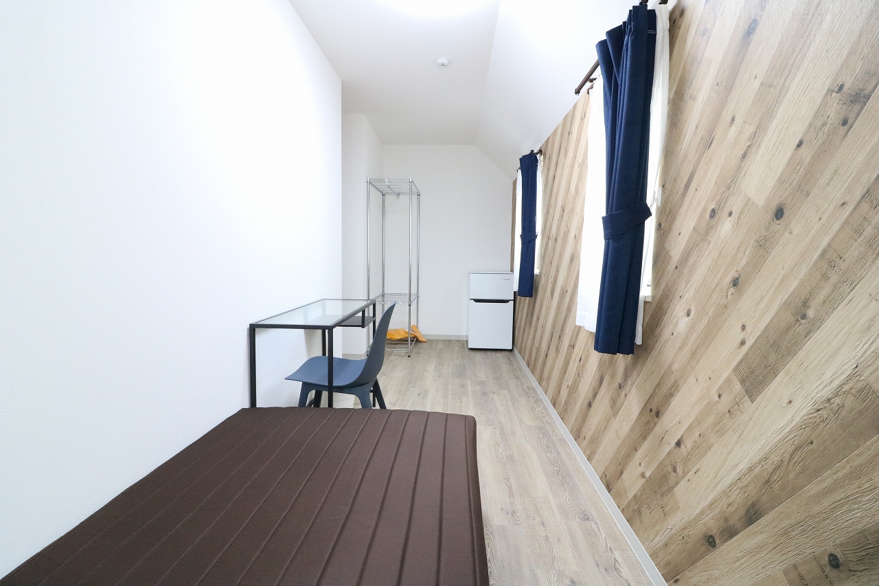 | 部屋設備 | エアコン・机・椅子・照明・冷蔵庫・ベット・収納ラック・カーテン・室内物干し・各居室インターネット |