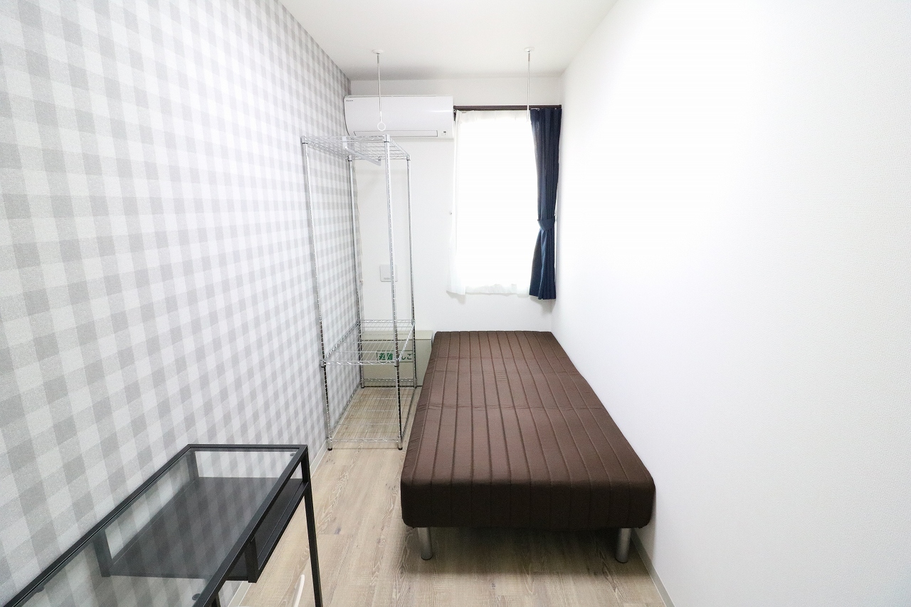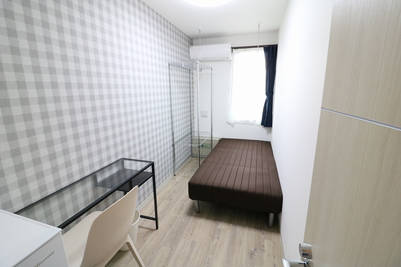 | 部屋設備 | エアコン・机・椅子・照明・冷蔵庫・ベット・収納ラック・カーテン・室内物干し・各居室インターネット |