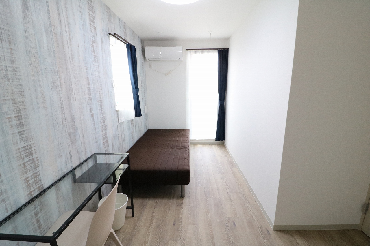 | 部屋設備 | エアコン・机・椅子・照明・冷蔵庫・ベット・収納ラック・カーテン・室内物干し・各居室インターネット |