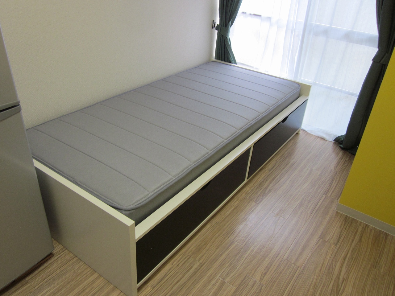 | 部屋設備 | ベット・デスク・イス・卓上ランプ・室内照明器具・冷蔵庫・エアコン・カーテン・テレビ・収納棚 |