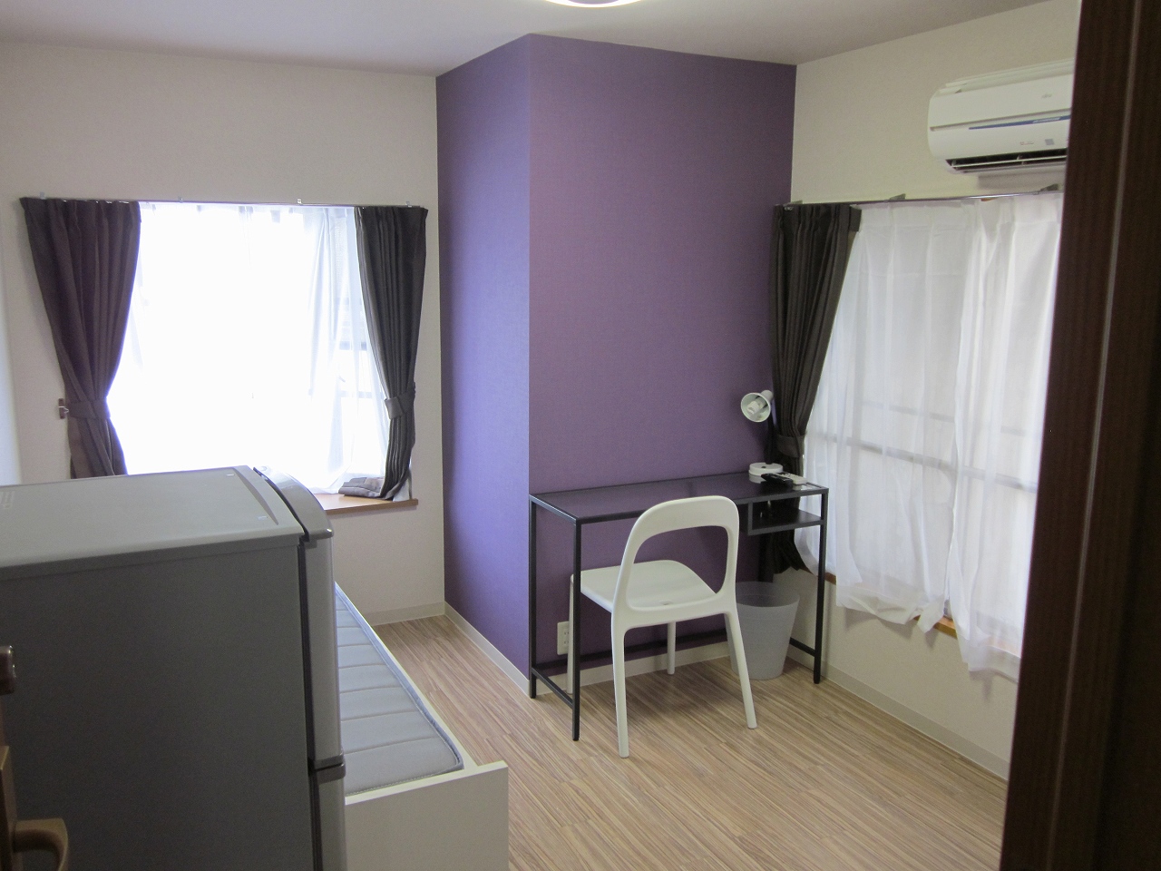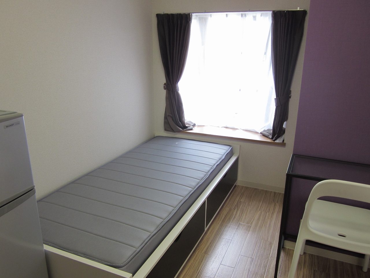 | 部屋設備 | ベッド・机・イス・カーテン・照明器具・冷蔵庫・エアコン・収納棚 |