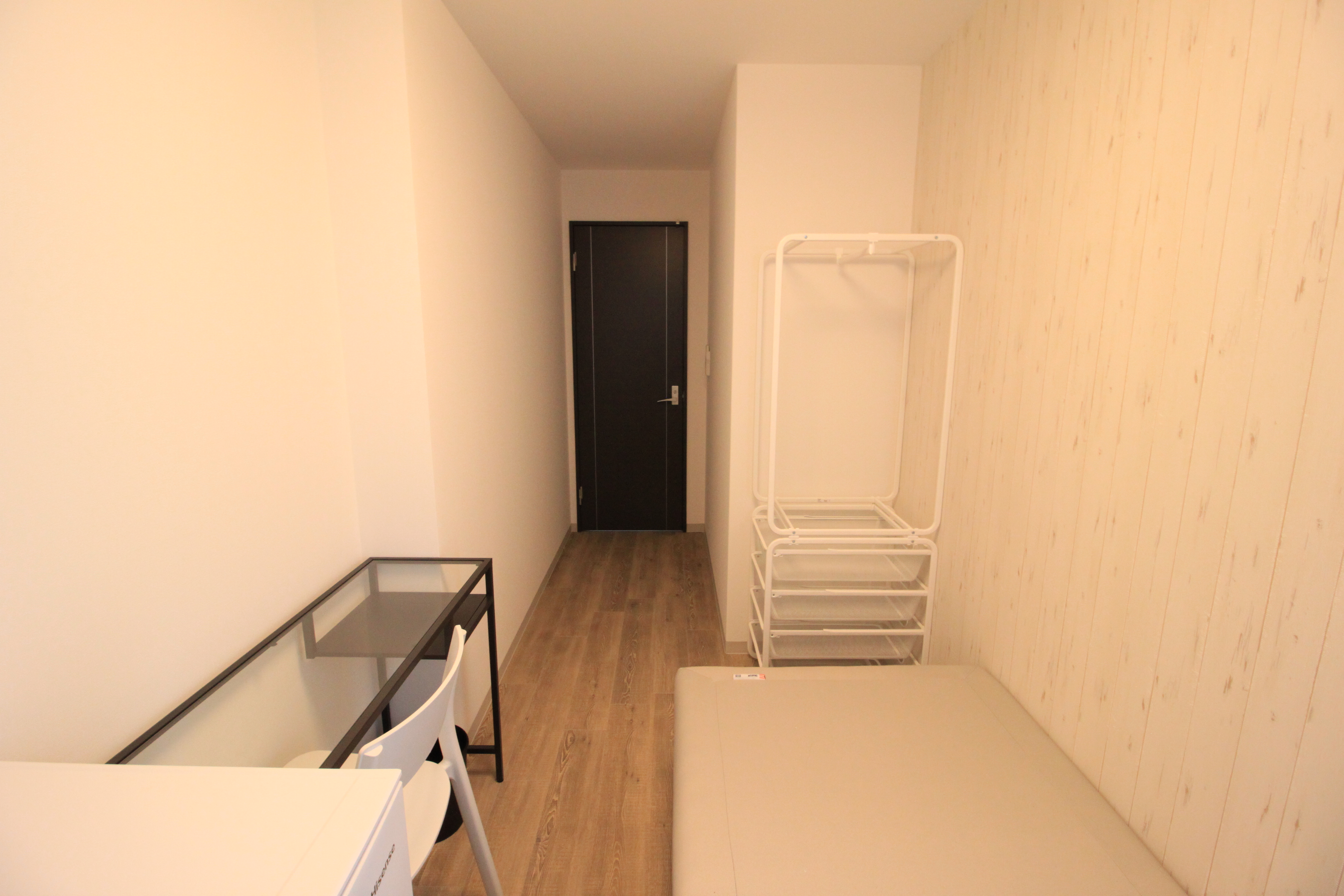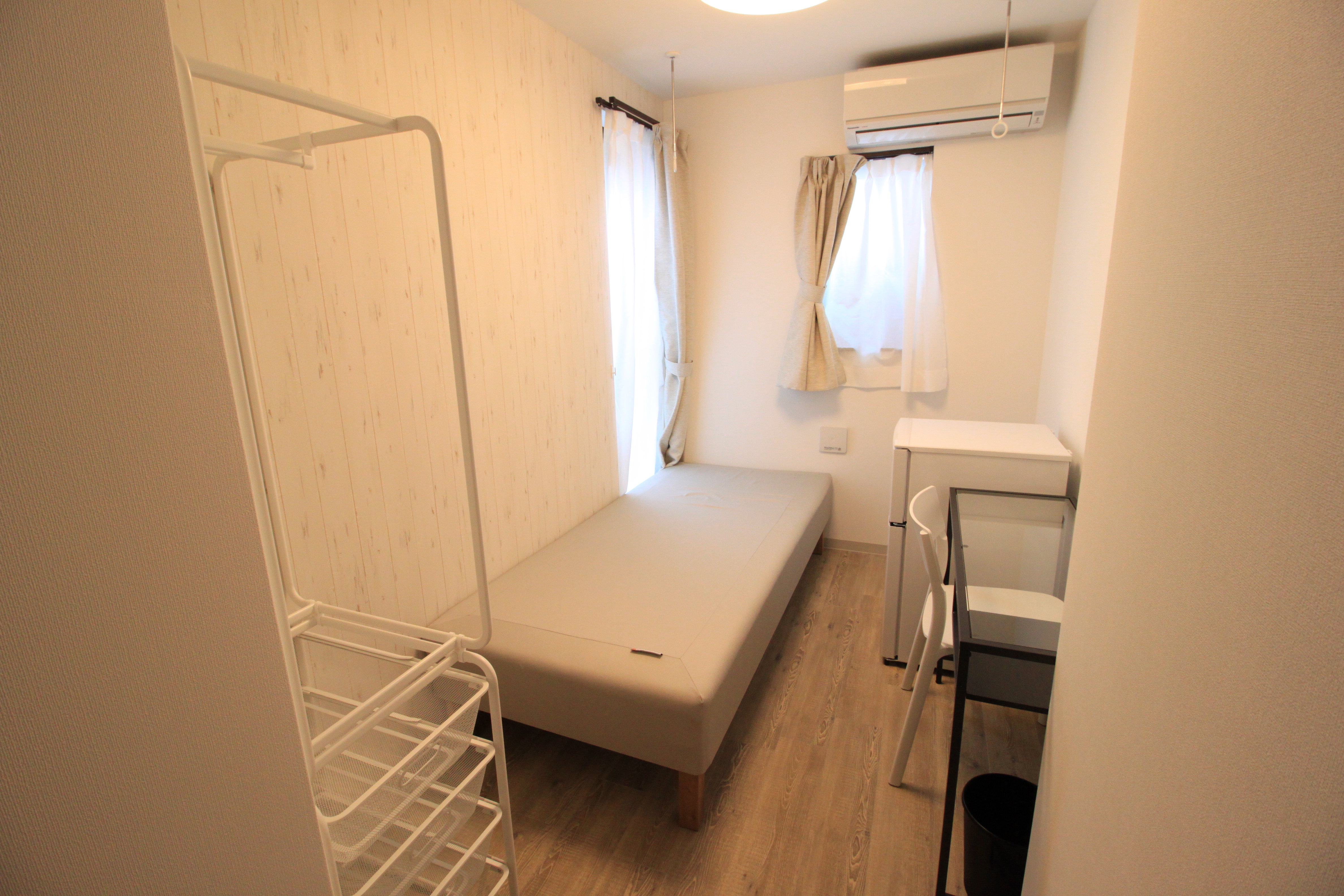 | 部屋設備 | ベッド・机・イス・カーテン・照明器具・冷蔵庫・エアコン・収納棚・物干し器具 |