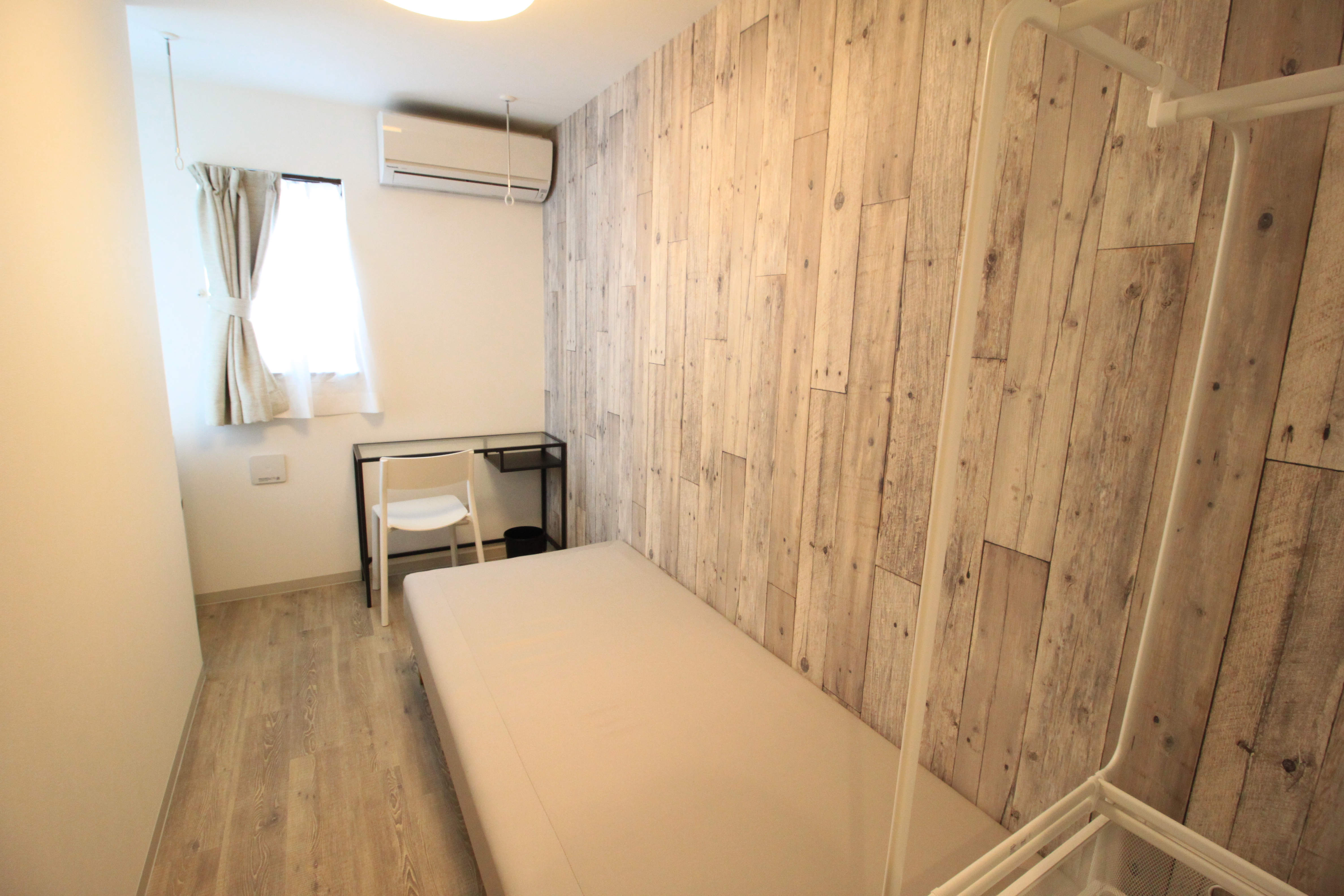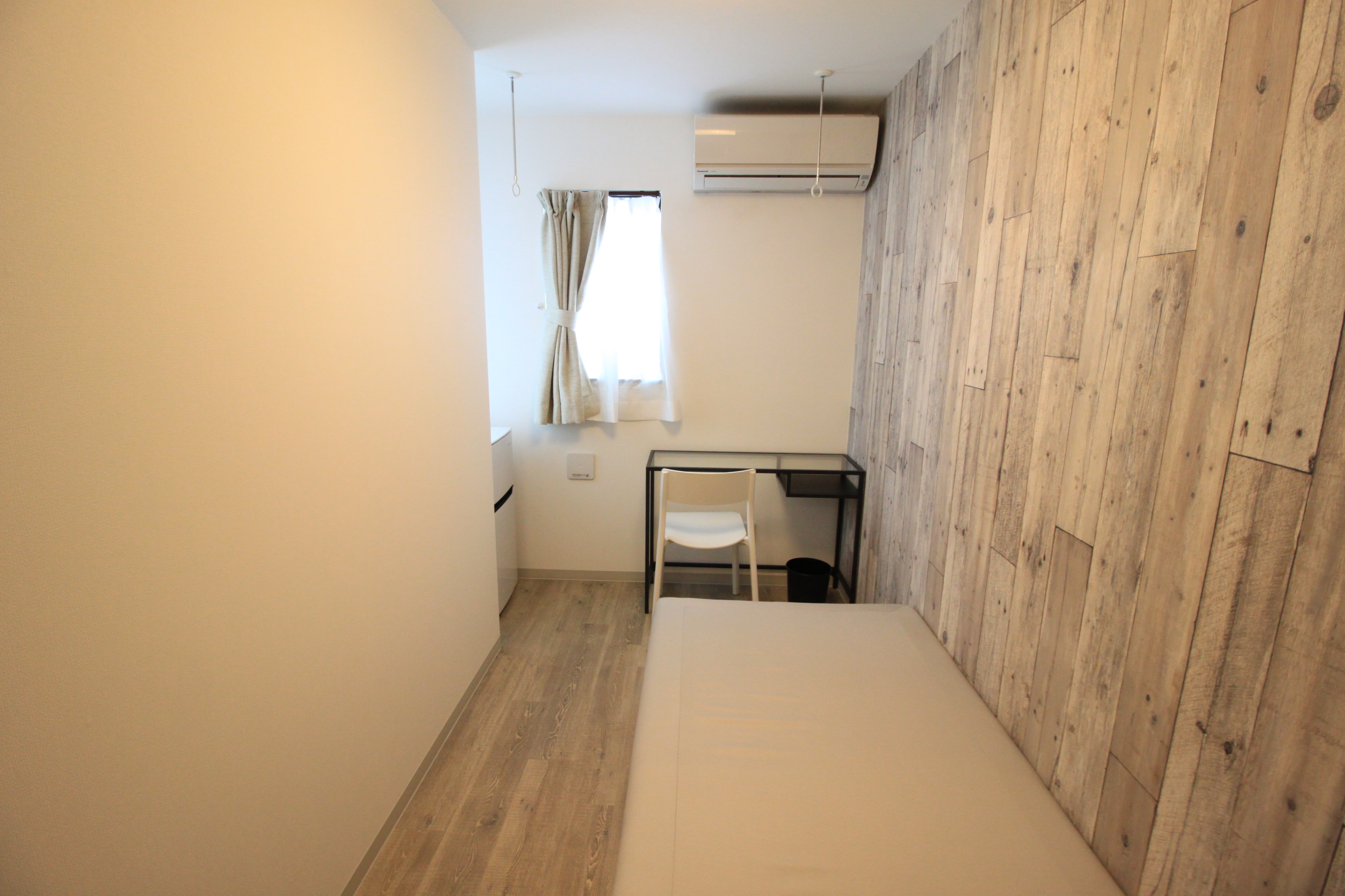 | 部屋設備 | ベッド・机・イス・カーテン・照明器具・冷蔵庫・エアコン・収納棚・物干し器具 |
