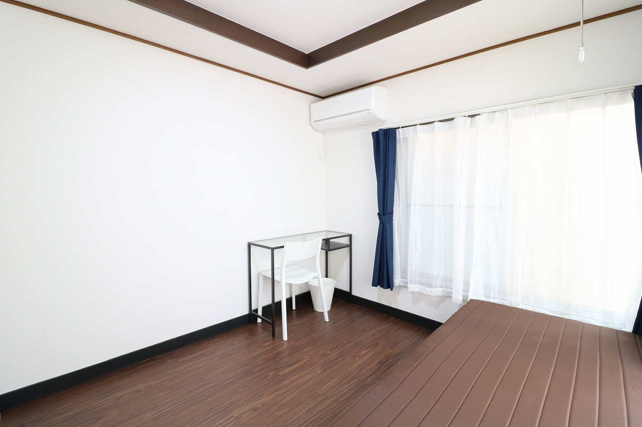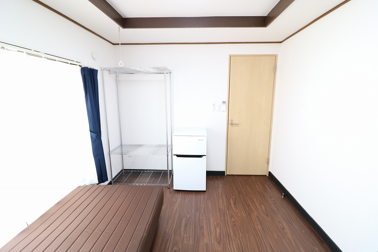 | 部屋設備 | ベッド・机・イス・照明器具・エアコン・冷蔵庫・カーテン・収納ラック・室内物干し |