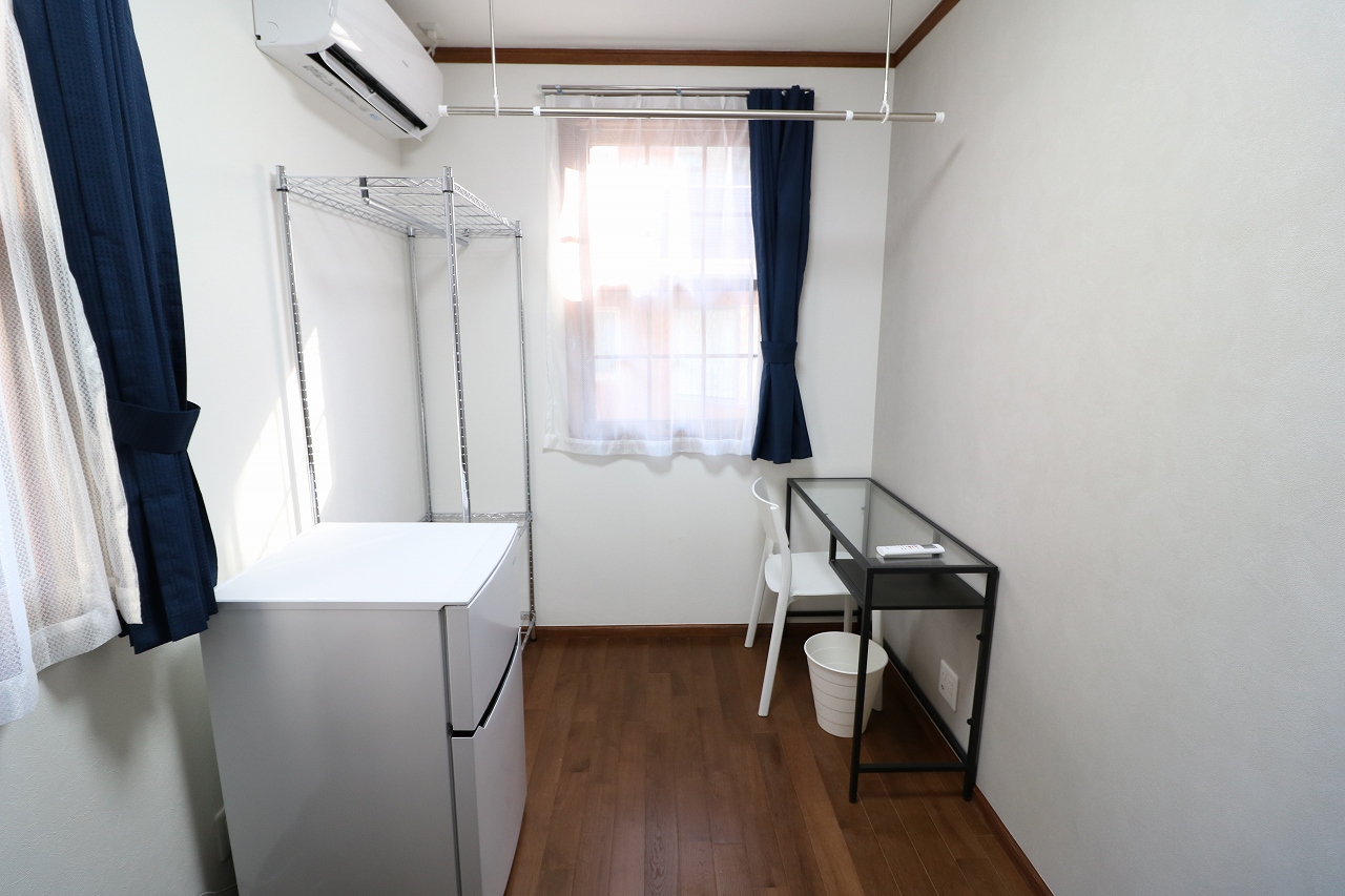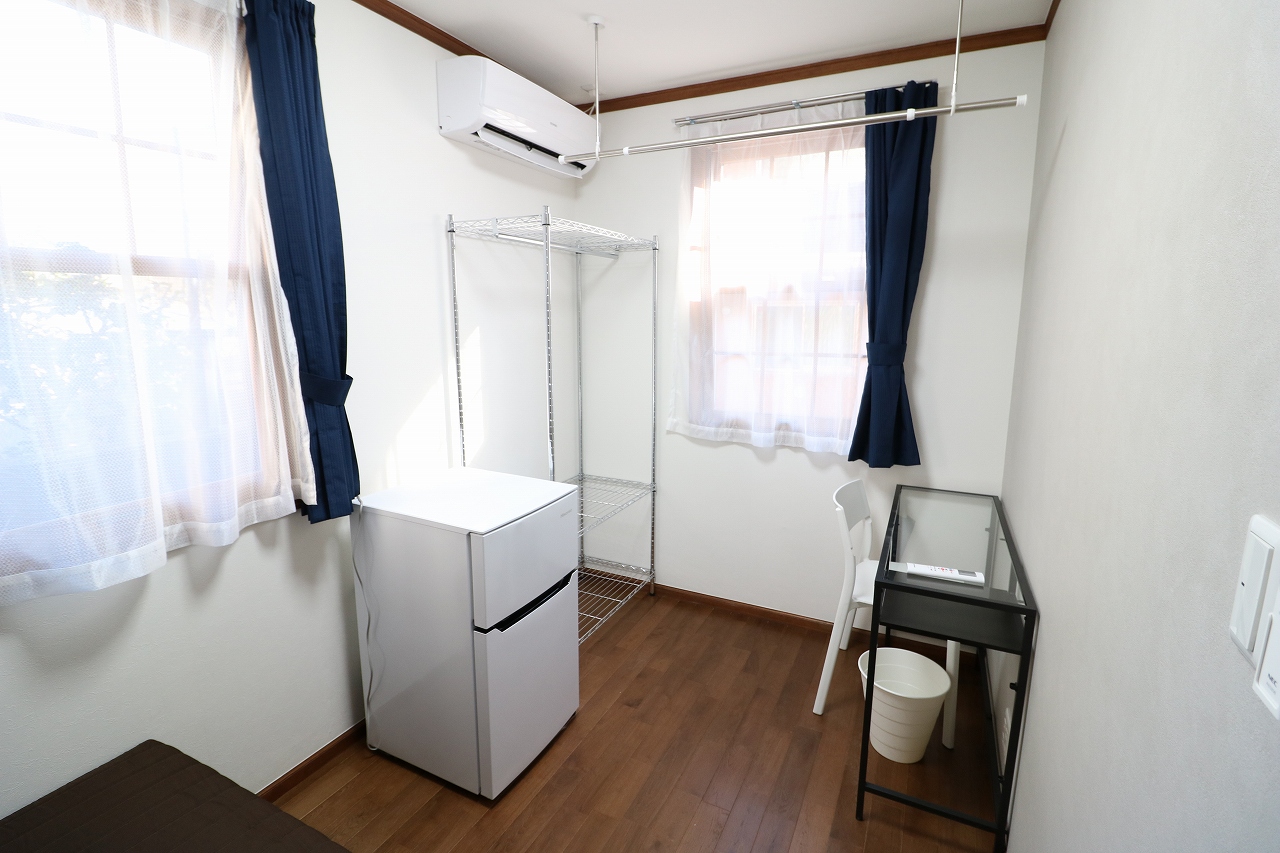| 部屋設備 | ベッド・机・イス・照明器具・エアコン・冷蔵庫・カーテン・収納ラック・室内物干し |