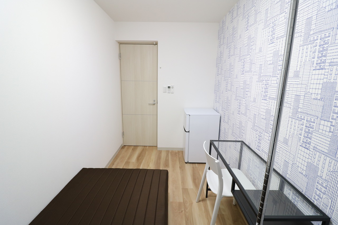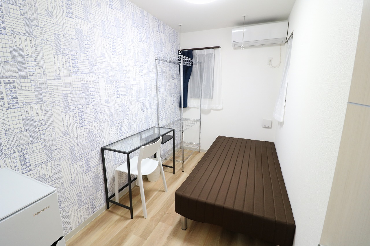 | 部屋設備 | ベッド・机・イス・カーテン・照明器具・冷蔵庫・エアコン・収納棚・物干し器具 |