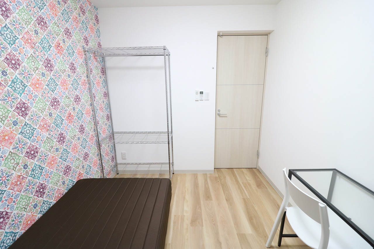 | 部屋設備 | ベッド・机・イス・カーテン・照明器具・冷蔵庫・エアコン・収納棚・物干し器具 |