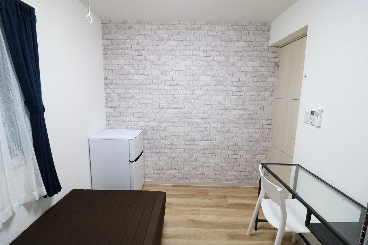 | 部屋設備 | ベッド・机・イス・カーテン・照明器具・冷蔵庫・エアコン・収納棚・物干し器具 |