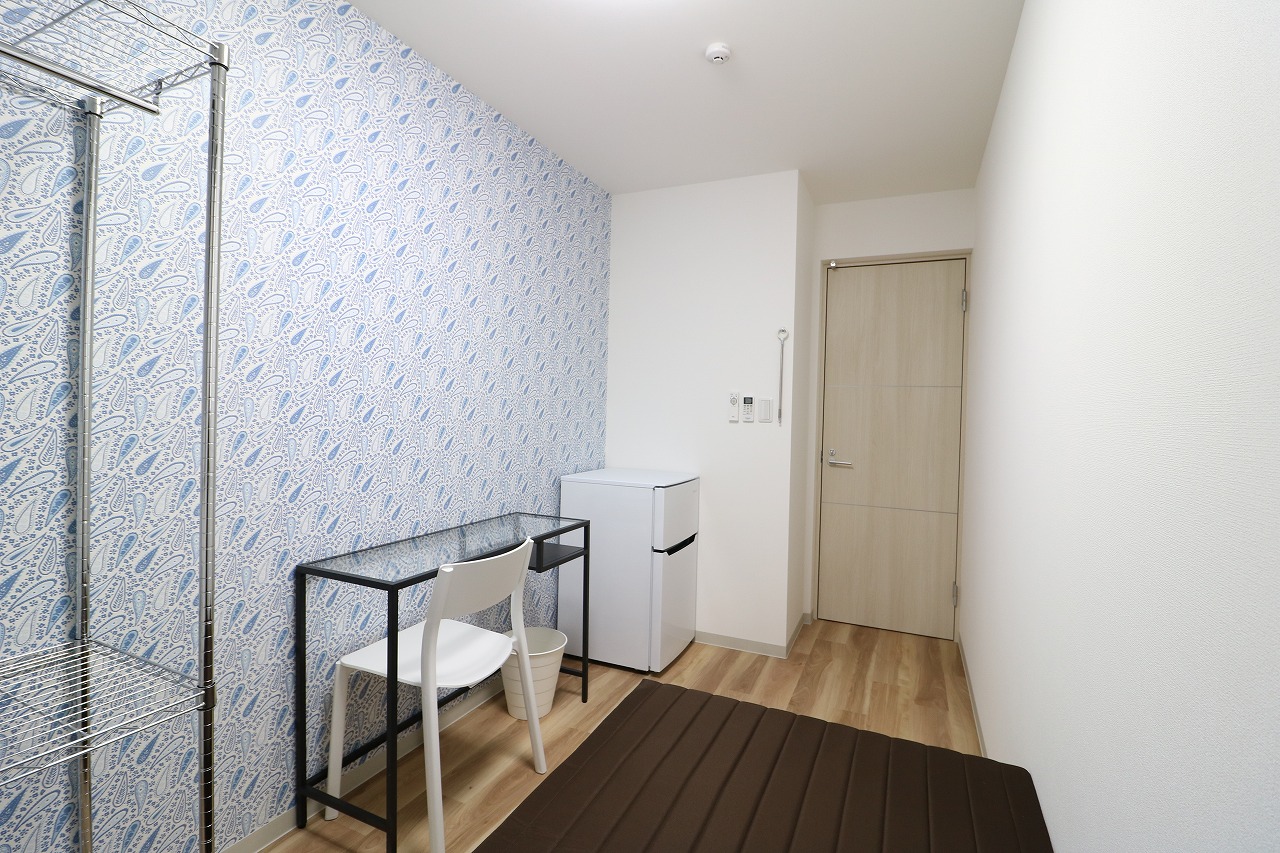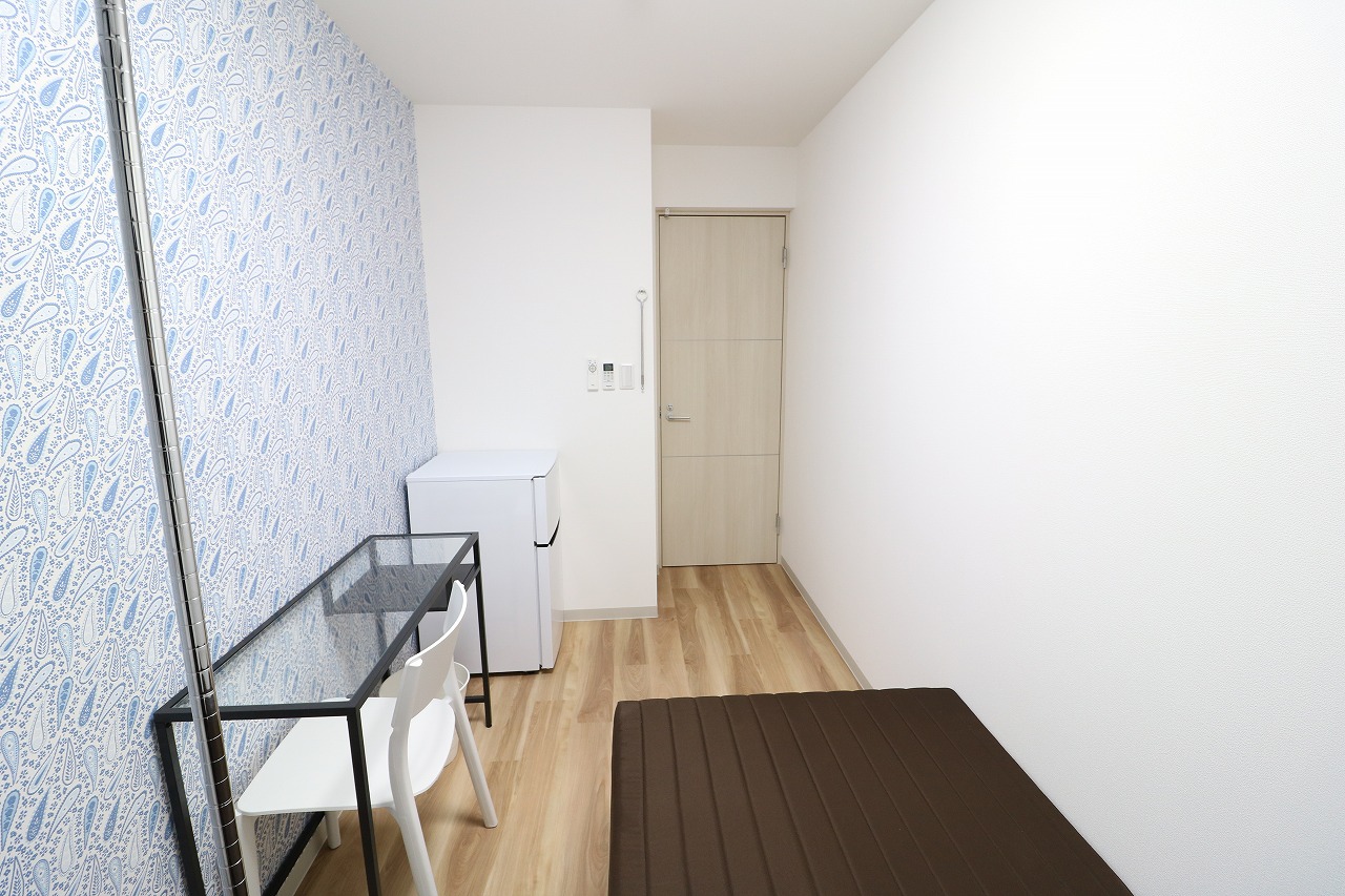 | 部屋設備 | ベッド・机・イス・カーテン・照明器具・冷蔵庫・エアコン・収納棚・物干し器具 |