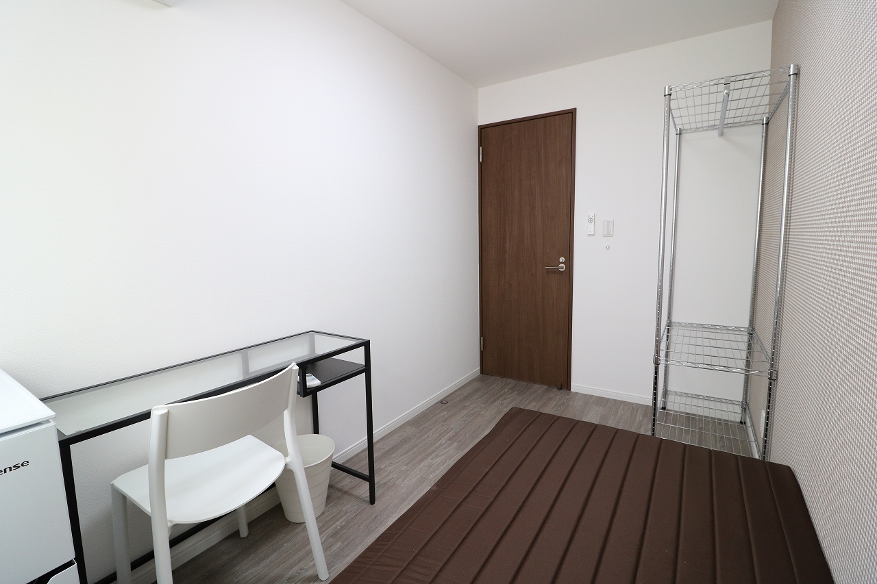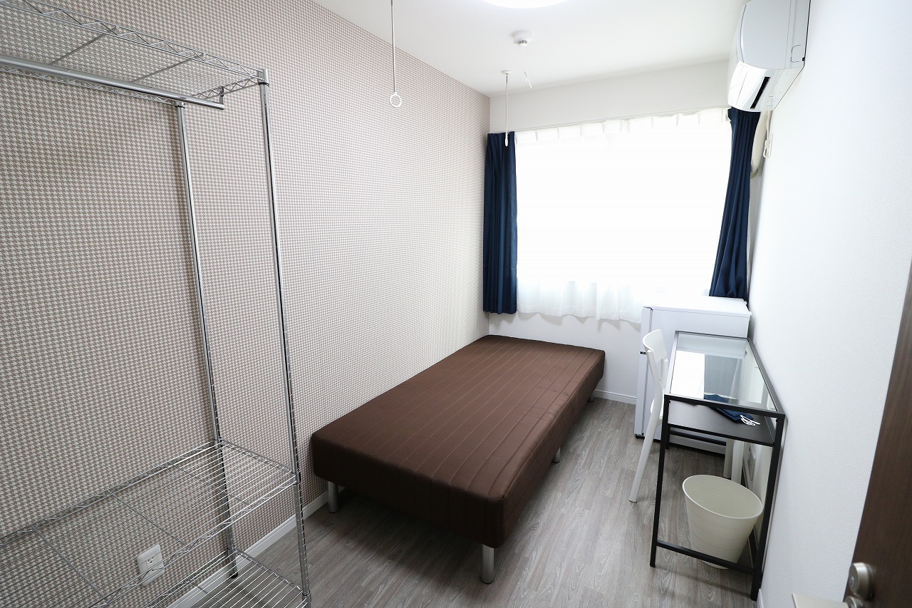 | 部屋設備 | 机、椅子、冷蔵庫、ベッド、エアコン、物干し、収納ラック、カーテン |