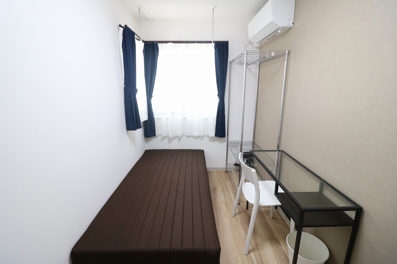 | 部屋設備 | ベッド・机・イス・カーテン・照明器具・冷蔵庫・エアコン・収納棚・物干し器具 |