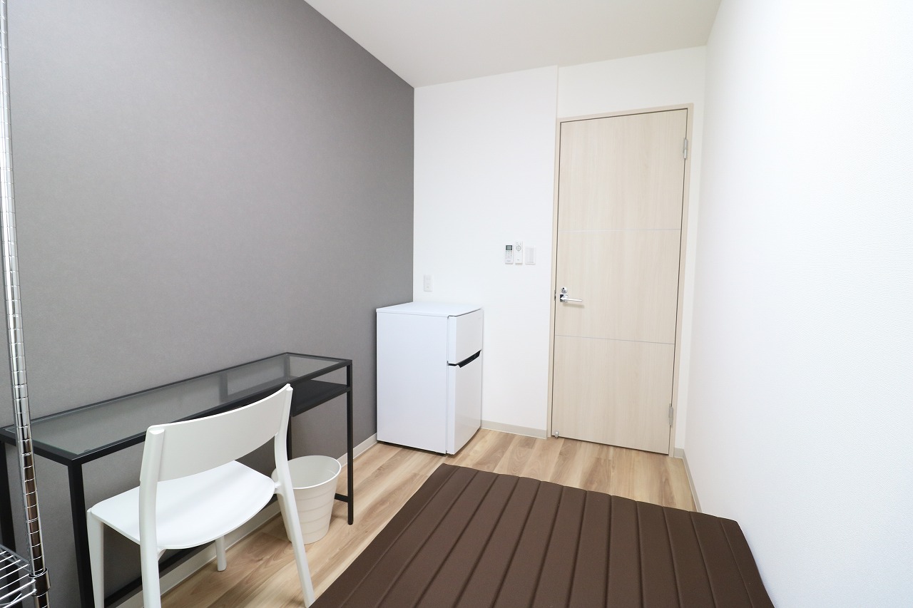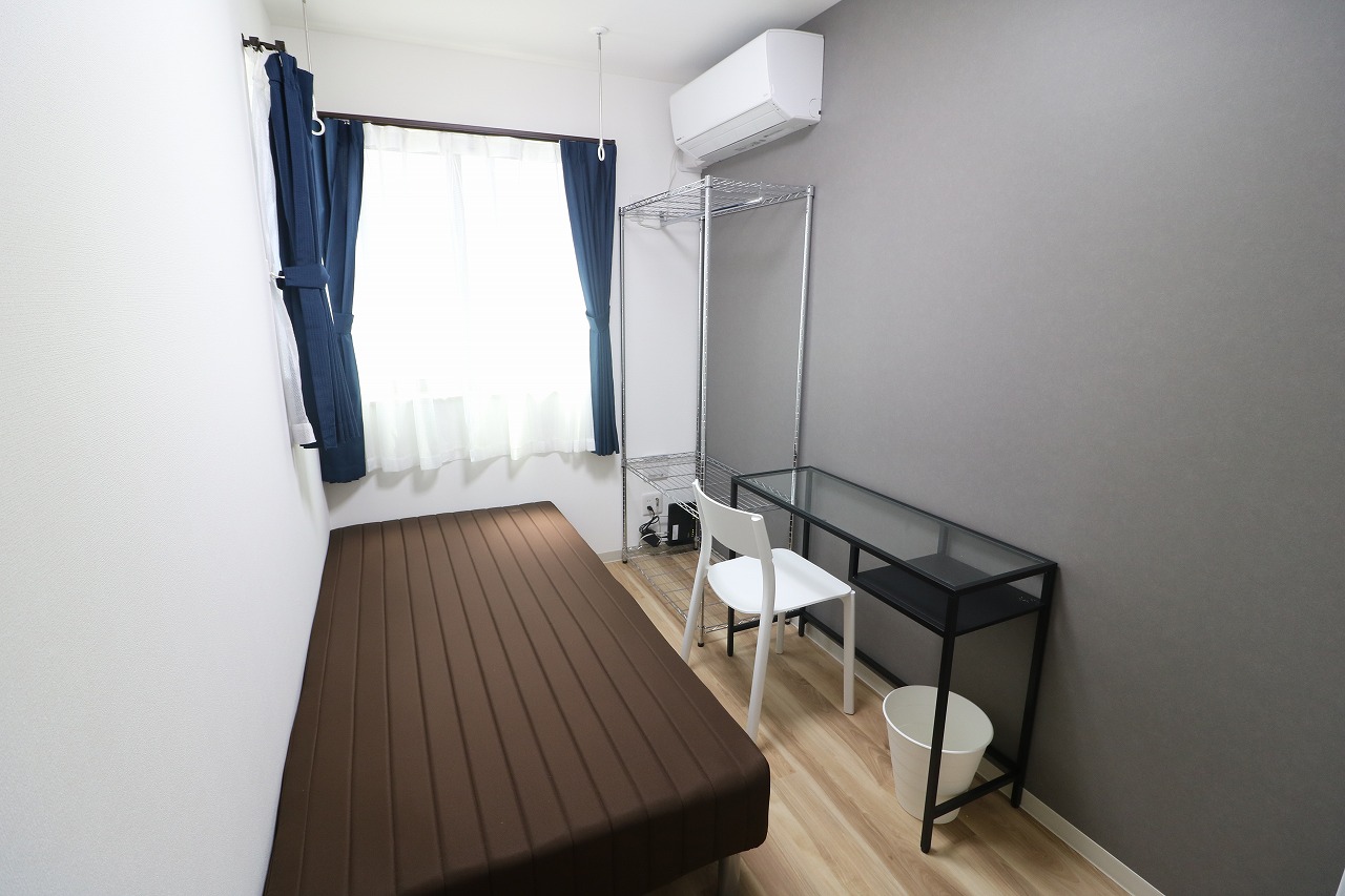 | 部屋設備 | ベッド・机・イス・カーテン・照明器具・冷蔵庫・エアコン・収納棚・物干し器具 |