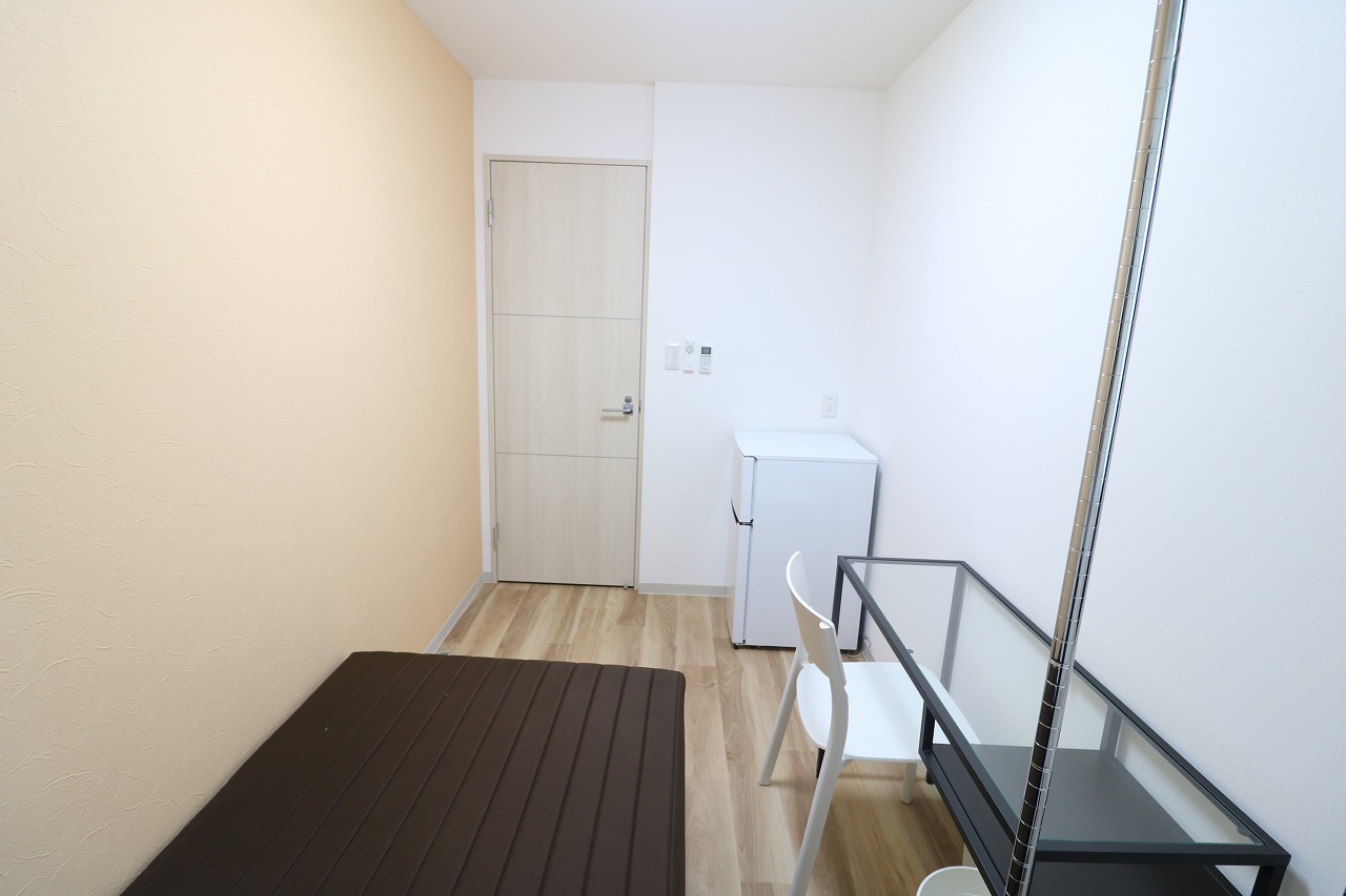 | 部屋設備 | ベッド・机・イス・カーテン・照明器具・冷蔵庫・エアコン・収納棚・物干し器具 |