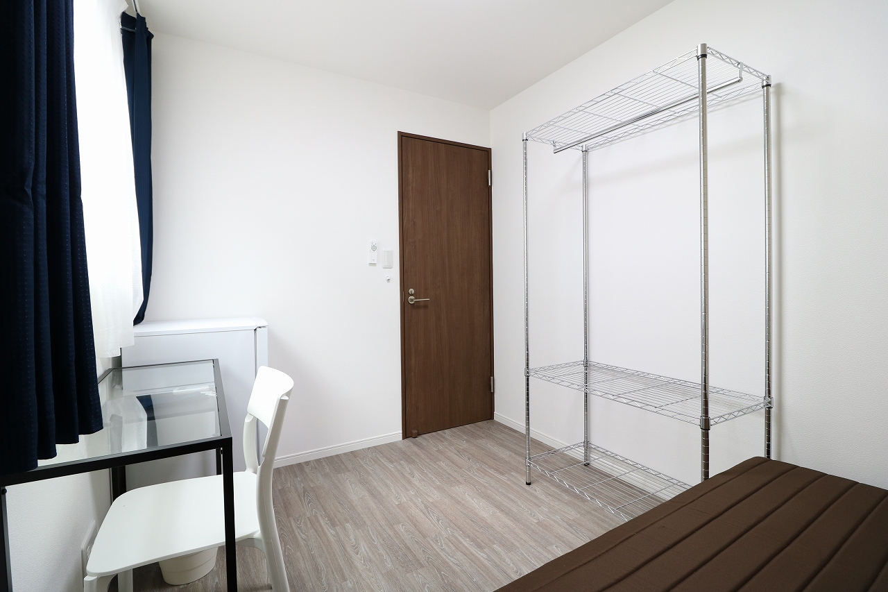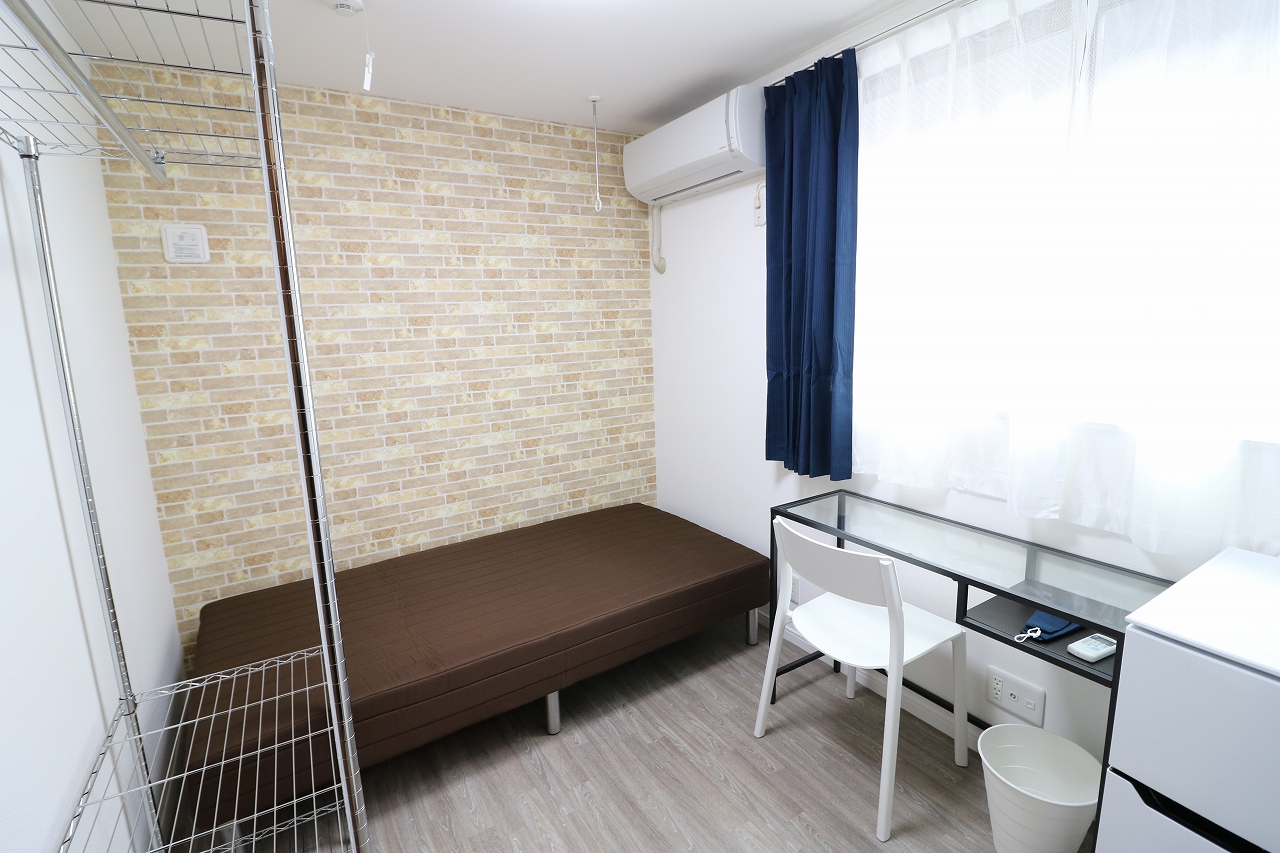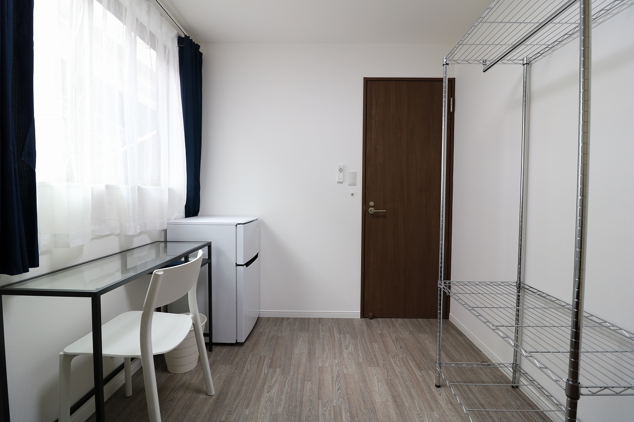 | 部屋設備 | 机、椅子、冷蔵庫、ベッド、エアコン、物干し、収納ラック、カーテン |