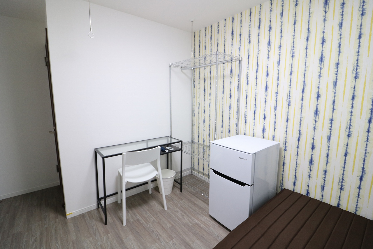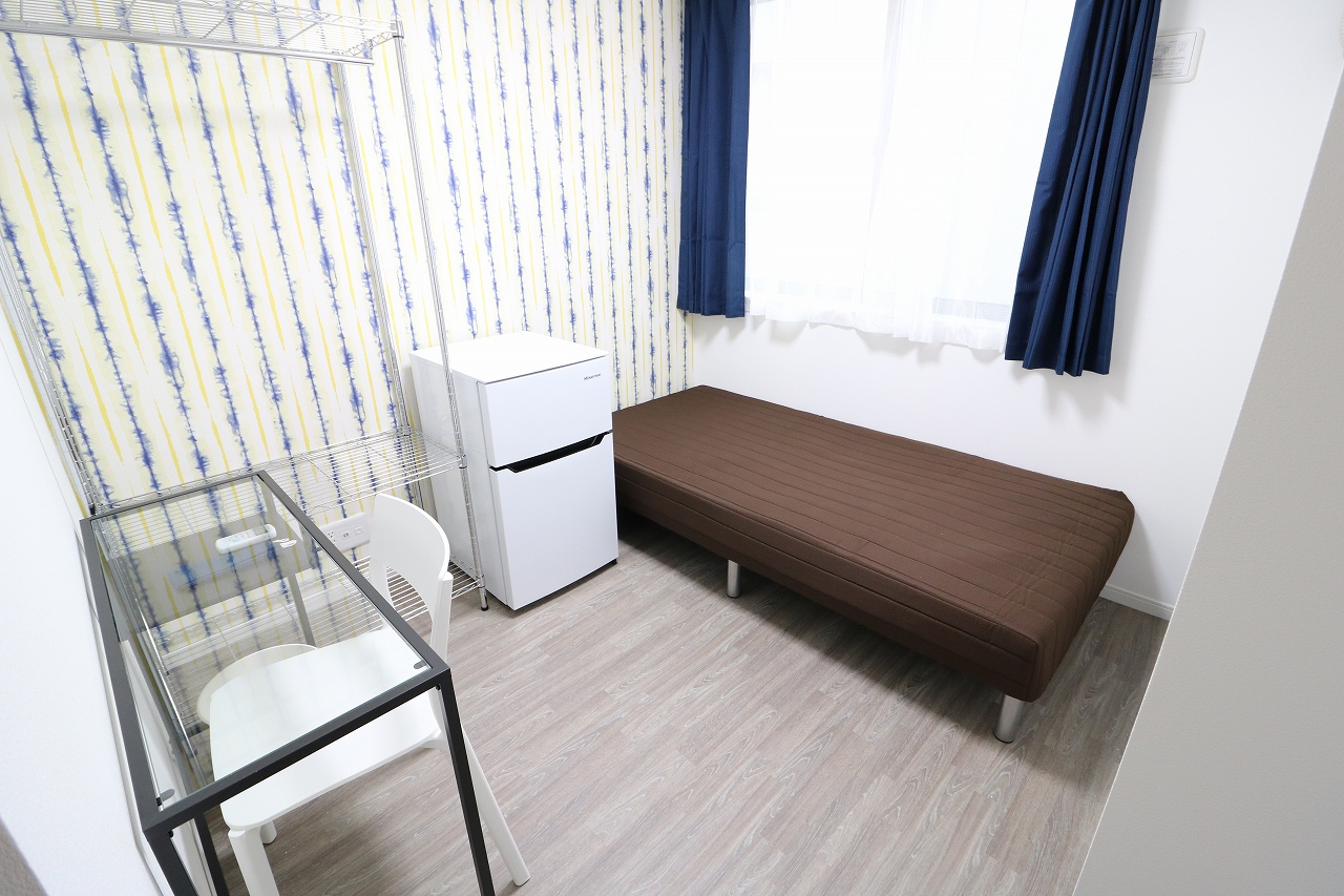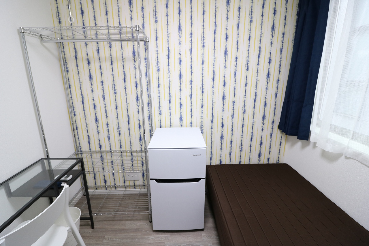 | 部屋設備 | 机、椅子、冷蔵庫、ベッド、エアコン、物干し、収納ラック、カーテン |
