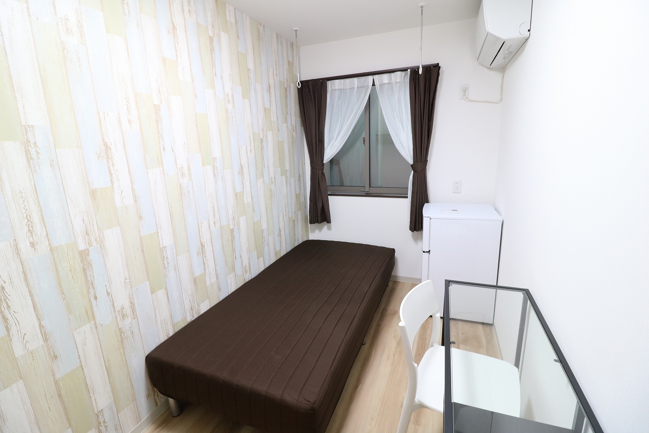 | 部屋設備 | ベッド、机、イス、照明器具、エアコン、冷蔵庫、カーテン、クローゼット |