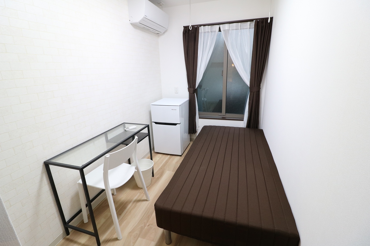 | 部屋設備 | ベッド、机、イス、照明器具、エアコン、冷蔵庫、カーテン、クローゼット |