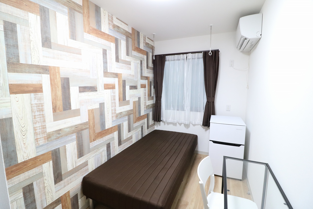 | 部屋設備 | ベッド、机、イス、照明器具、エアコン、冷蔵庫、カーテン、クローゼット |
