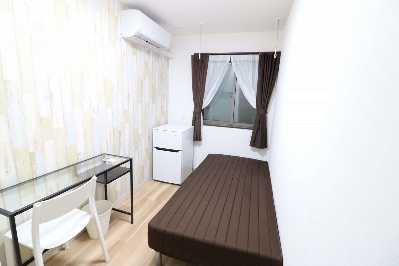 | 部屋設備 | ベッド、机、イス、照明器具、エアコン、冷蔵庫、カーテン、クローゼット |