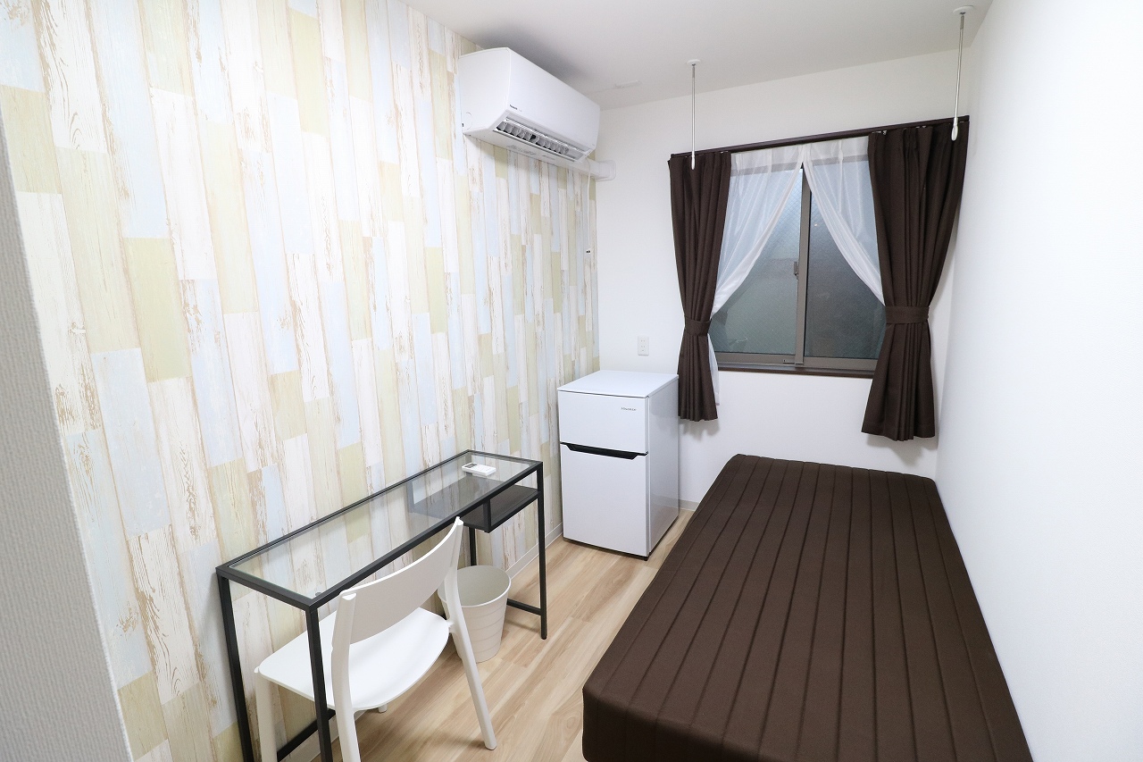 | 部屋設備 | ベッド、机、イス、照明器具、エアコン、冷蔵庫、カーテン、クローゼット |