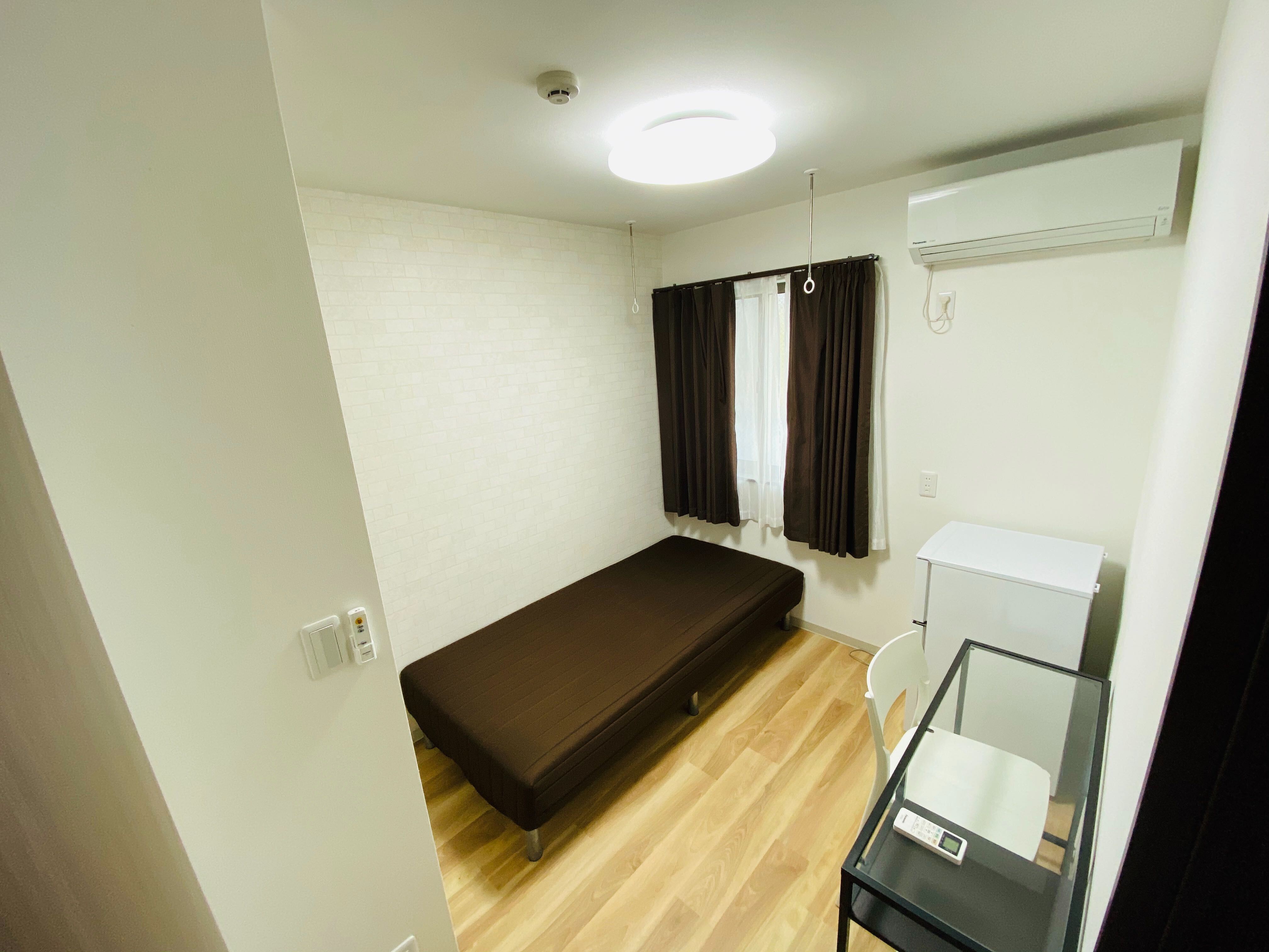 | 部屋設備 | ベッド、机、イス、照明器具、エアコン、冷蔵庫、カーテン、クローゼット |