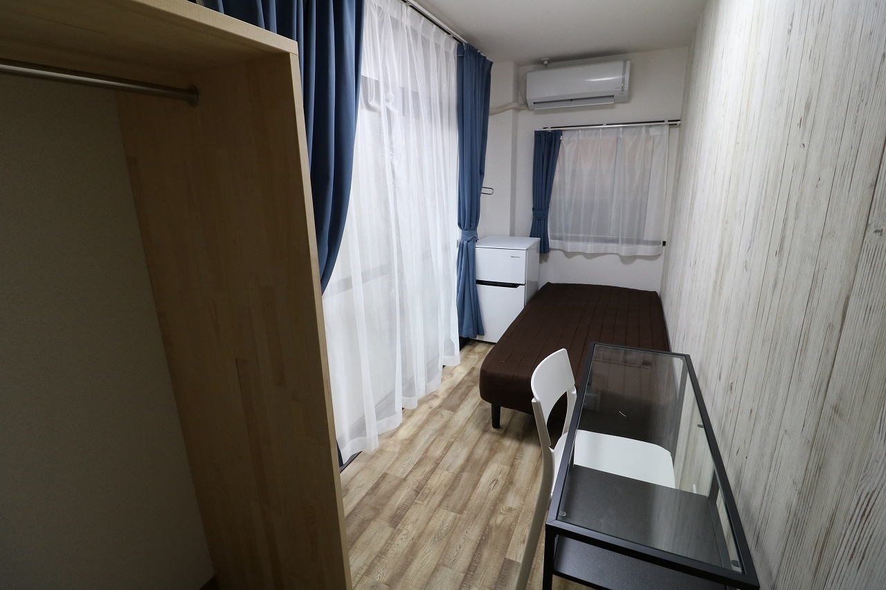 | 部屋設備 | ベッド、机、イス、照明器具、エアコン、冷蔵庫、カーテン、クローゼット |