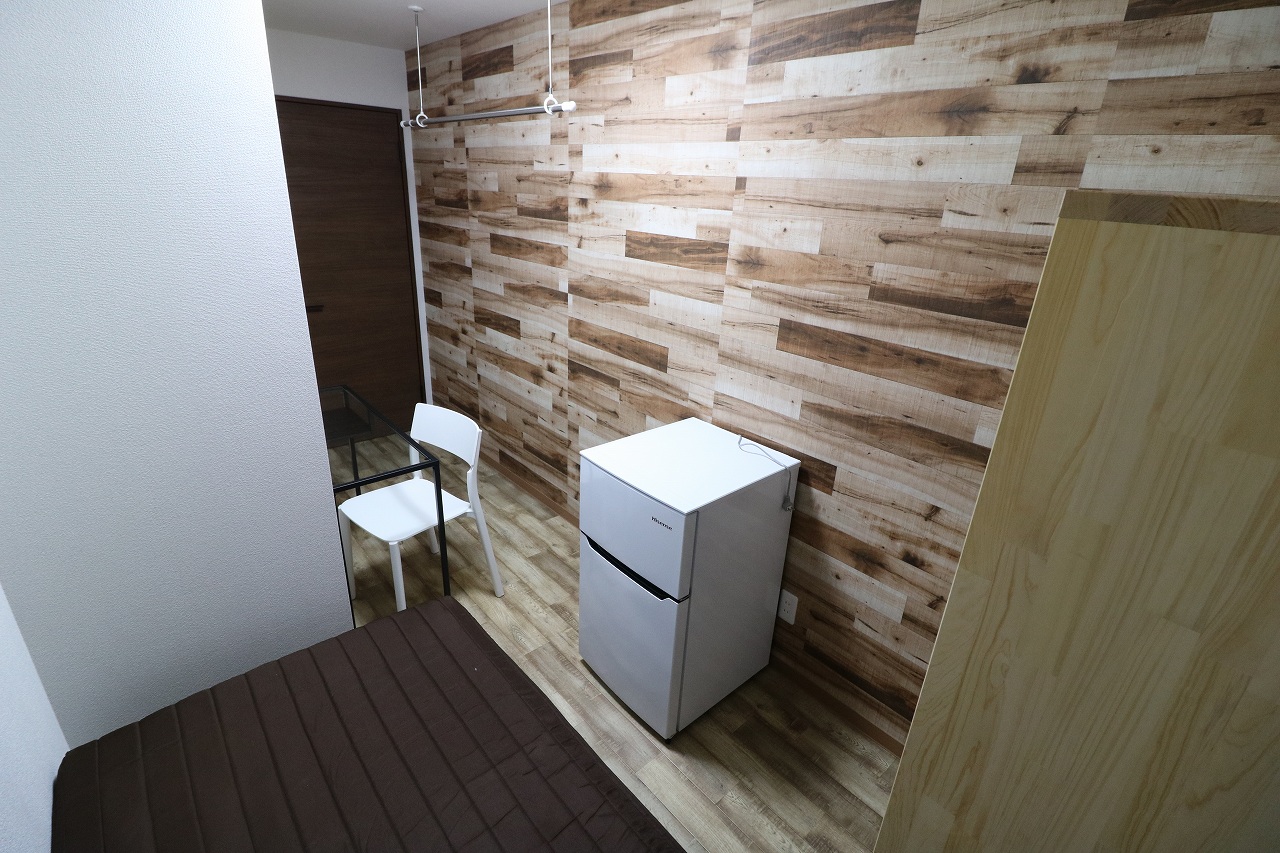 | 部屋設備 | ベッド、机、イス、照明器具、エアコン、冷蔵庫、カーテン、クローゼット |