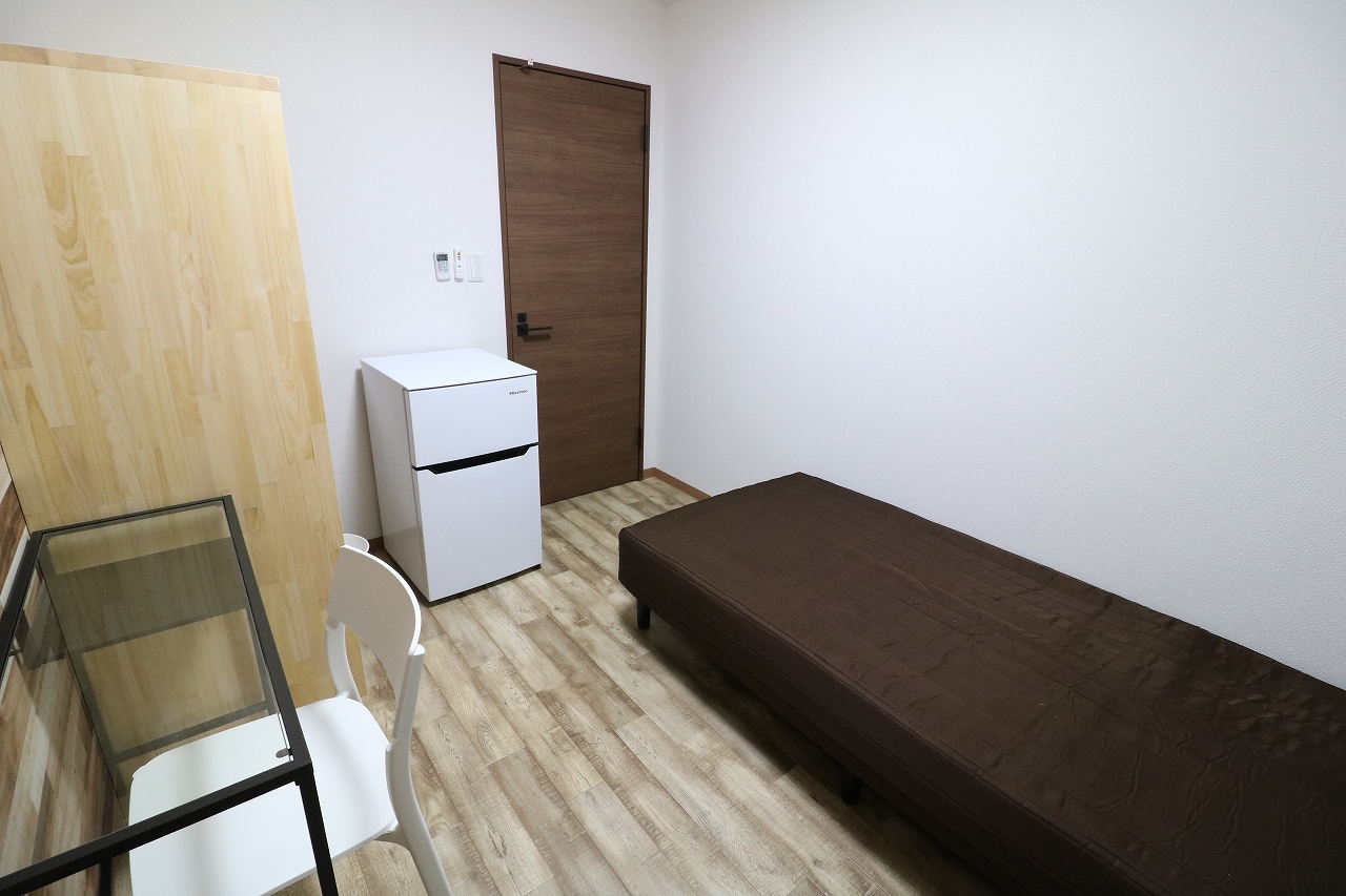| 部屋設備 | ベッド、机、イス、照明器具、エアコン、冷蔵庫、カーテン、クローゼット |