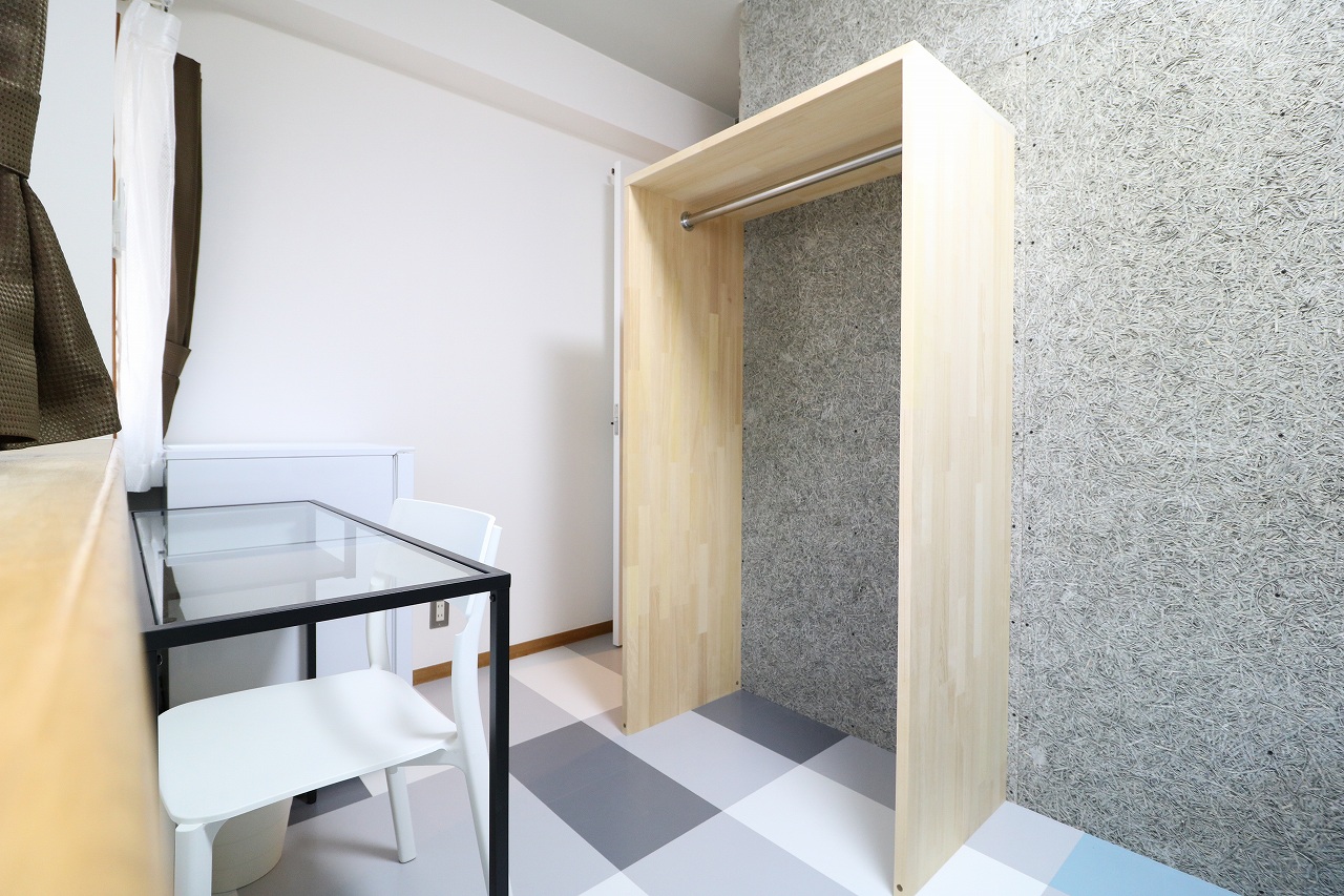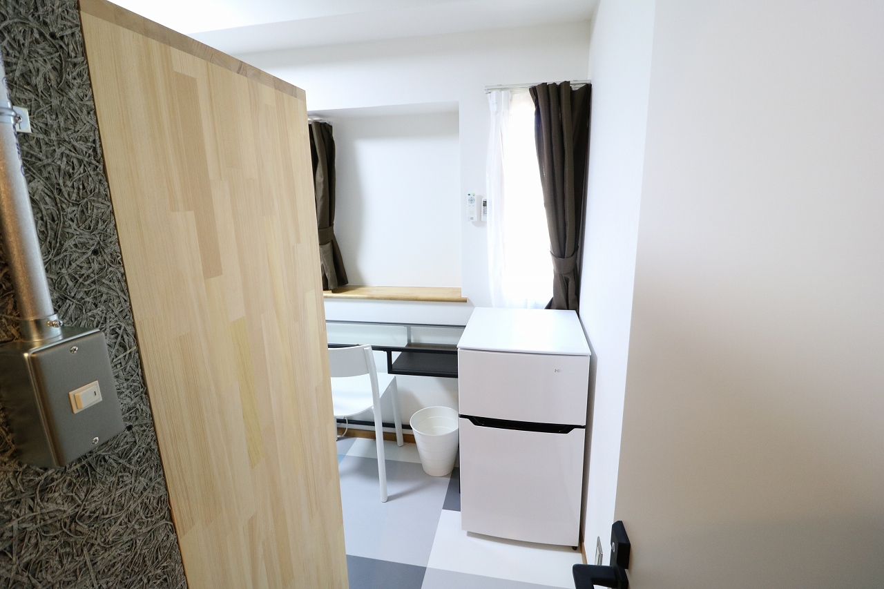 | 部屋設備 | ベッド、机、イス、照明器具、エアコン、冷蔵庫、カーテン、クローゼット |