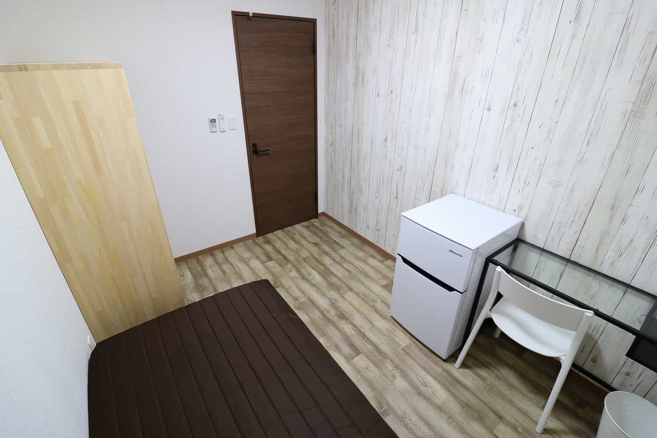 | 部屋設備 | ベッド、机、イス、照明器具、エアコン、冷蔵庫、カーテン、クローゼット |