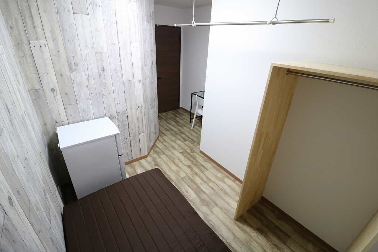 | 部屋設備 | ベッド、机、イス、照明器具、エアコン、冷蔵庫、カーテン、クローゼット |