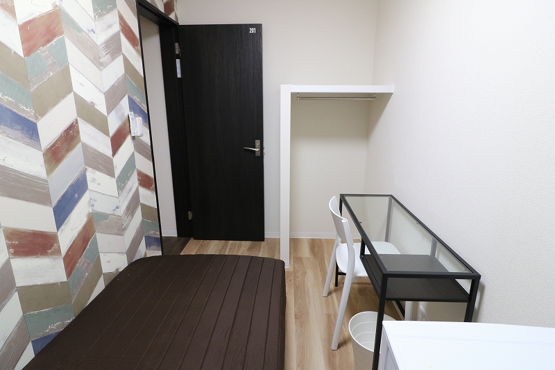 | 部屋設備 | ベッド、机、イス、照明器具、エアコン、冷蔵庫、カーテン、クローゼット |