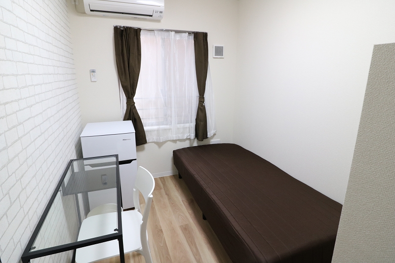 | 部屋設備 | ベッド、机、イス、照明器具、エアコン、冷蔵庫、カーテン、クローゼット |