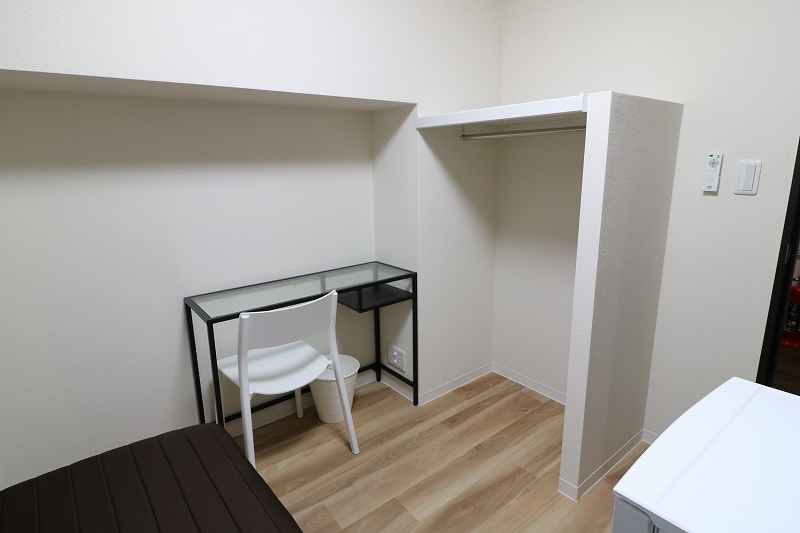 | 部屋設備 | ベッド、机、イス、照明器具、エアコン、冷蔵庫、カーテン、クローゼット |