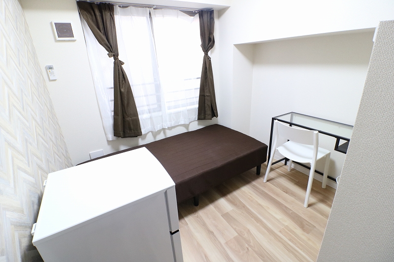 | 部屋設備 | ベッド、机、イス、照明器具、エアコン、冷蔵庫、カーテン、クローゼット |