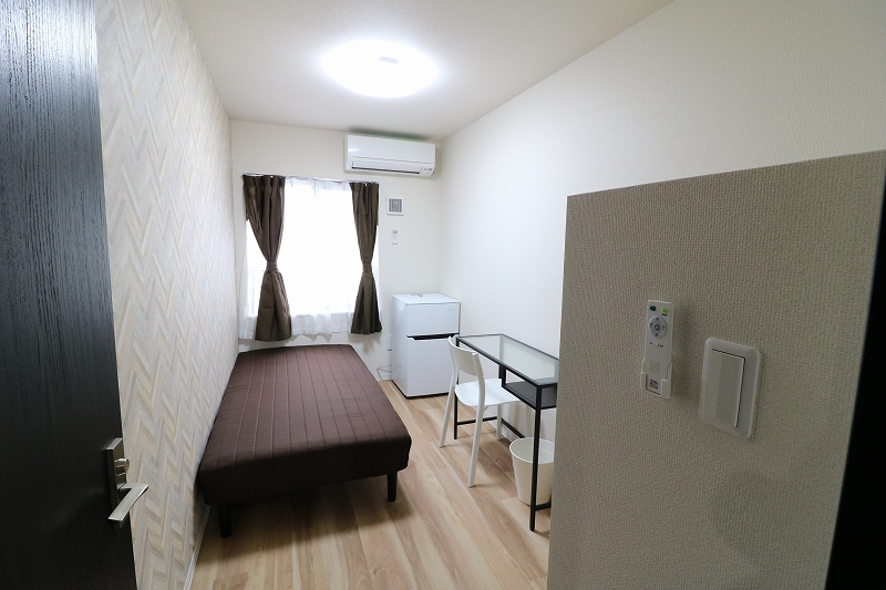 | 部屋設備 | ベッド、机、イス、照明器具、エアコン、冷蔵庫、カーテン、クローゼット |