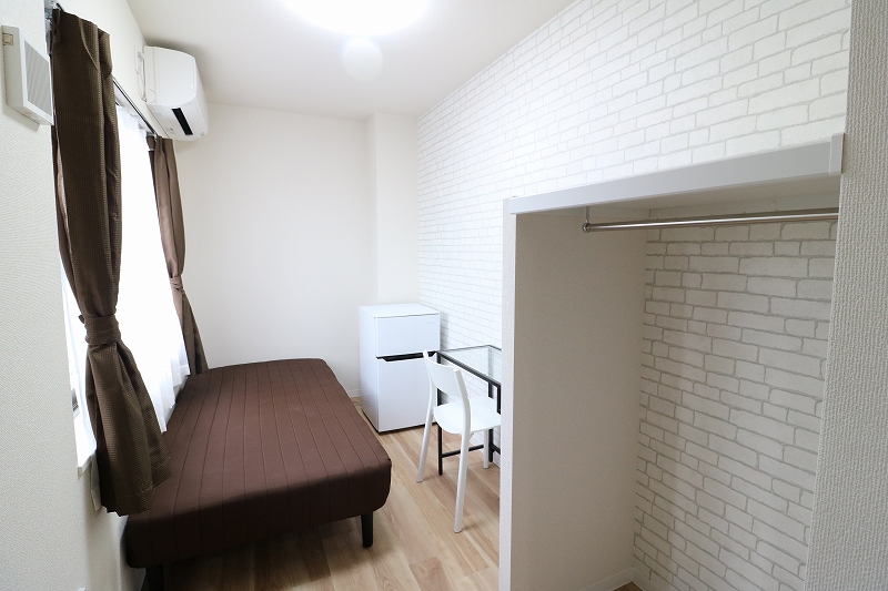 | 部屋設備 | ベッド、机、イス、照明器具、エアコン、冷蔵庫、カーテン、クローゼット |