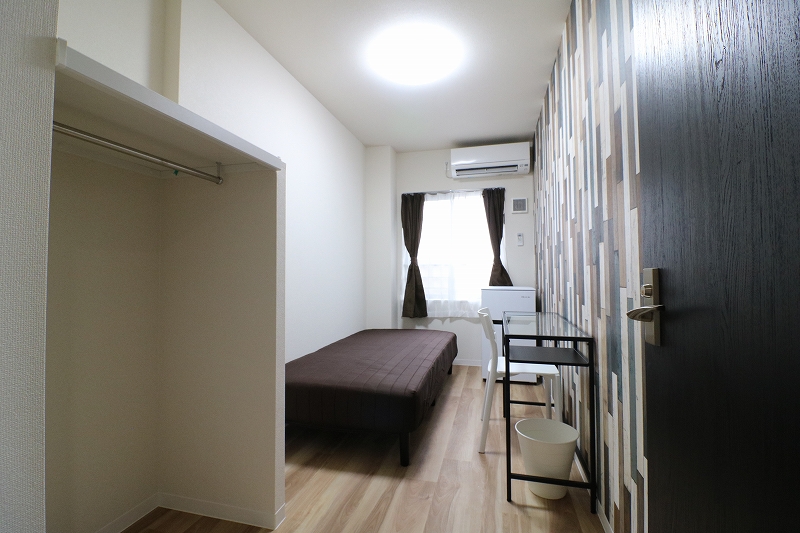 | 部屋設備 | ベッド、机、イス、照明器具、エアコン、冷蔵庫、カーテン、クローゼット |