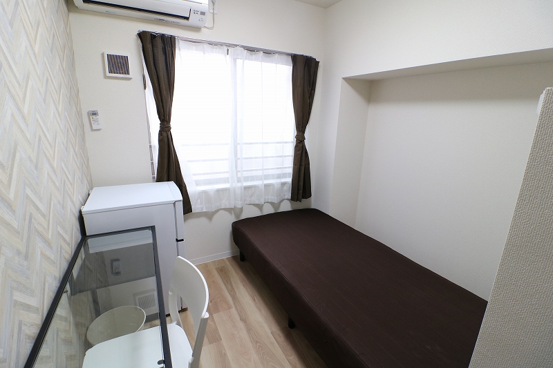 | 部屋設備 | ベッド、机、イス、照明器具、エアコン、冷蔵庫、カーテン、クローゼット |