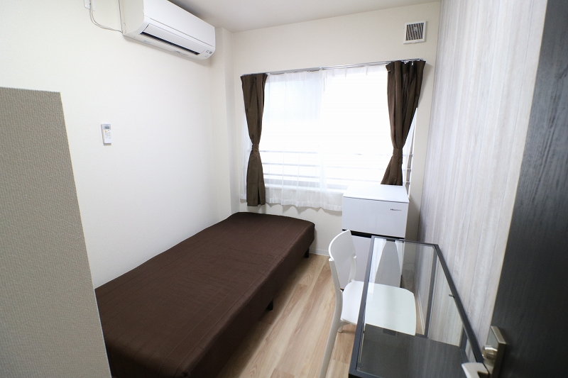 | 部屋設備 | ベッド、机、イス、照明器具、エアコン、冷蔵庫、カーテン、クローゼット |