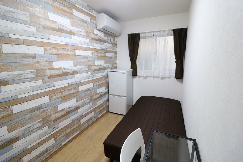 | 部屋設備 | ベッド、机、イス、照明器具、エアコン、冷蔵庫、カーテン、クローゼット |