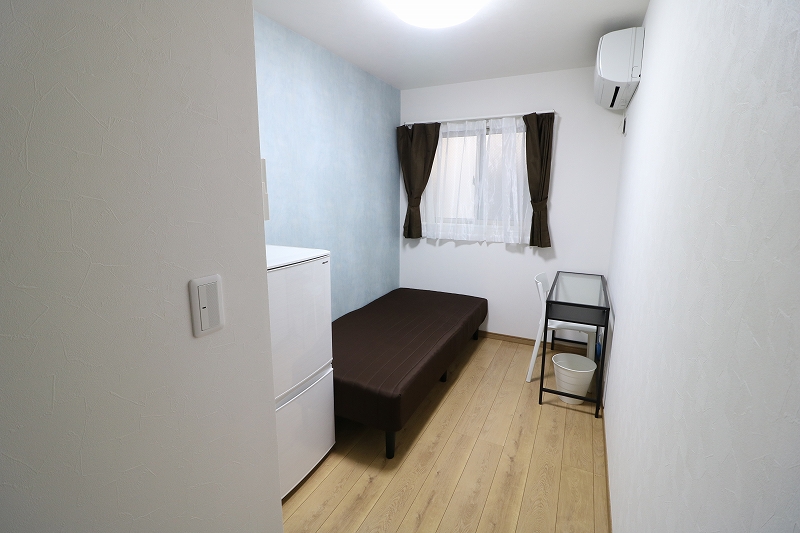 | 部屋設備 | ベッド、机、イス、照明器具、エアコン、冷蔵庫、カーテン、クローゼット |