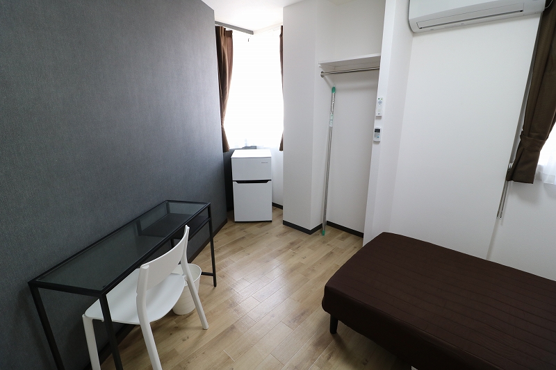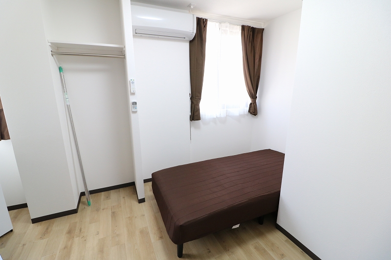 | 部屋設備 | ベッド・机・イス・カーテン・照明器具・冷蔵庫・エアコン・収納棚・物干し器具 |