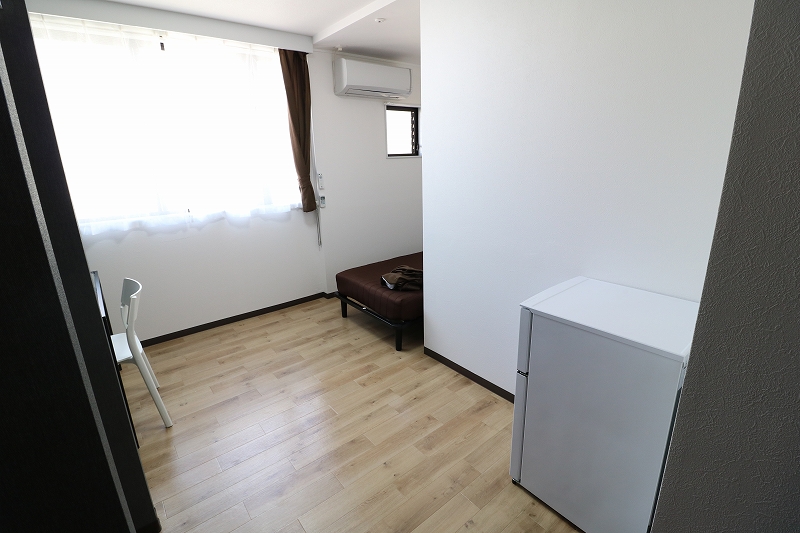 | 部屋設備 | ベッド・机・イス・カーテン・照明器具・冷蔵庫・エアコン・収納棚・物干し器具 |