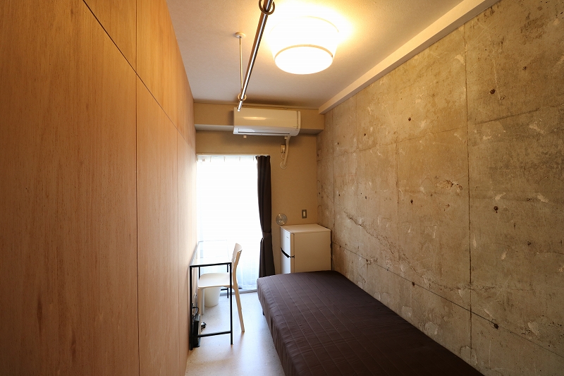 | 部屋設備 | ベッド、机、イス、照明器具、エアコン、冷蔵庫、カーテン、クローゼット |